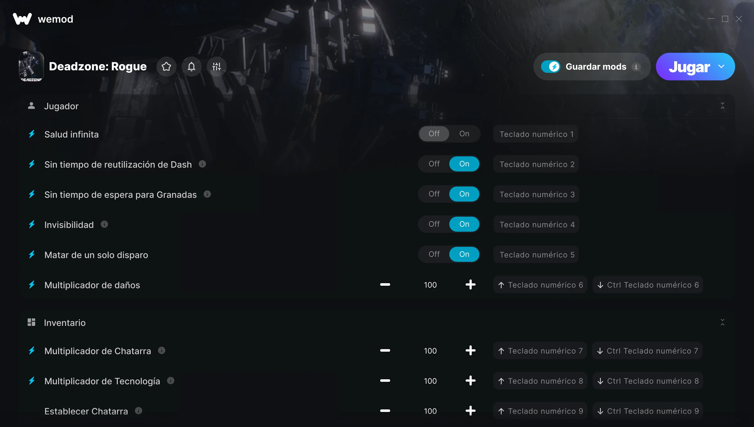 85MB Windows ...o visítanos en tu PC para descargar la aplicación Obtener Salud infinita, Sin tiempo de reutilización de Dash & 18 otros mods for Deadzone: Rogue with WeMod