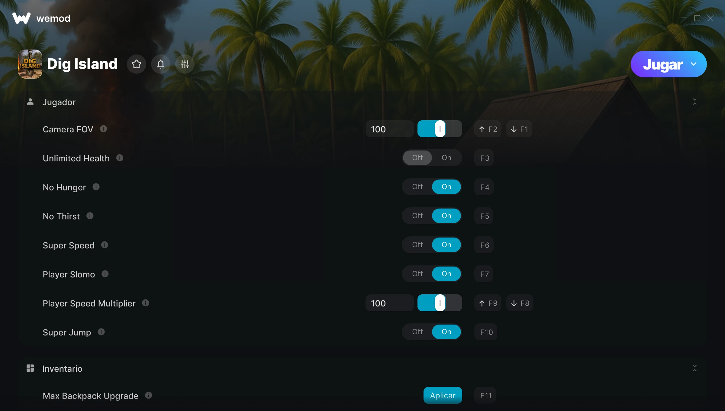 ¿Cómo puedo usar las trampas para Dig Island?WeMod mostrará todos los juegos en tu PC de forma segura. Abre un juego de la lista y simplemente pulsa jugar. Cuando el juego se haya cargado y estés in-game, podrás empezar a activar las diferentes trampas.¿Funcionará esto con mi versión del juego?WeMod utiliza tecnología avanzada para detectar la versión del juego que tienes y te informará si es compatible. Si no es así, todavía tendrás la opción de probarlo o solicitar una actualización.