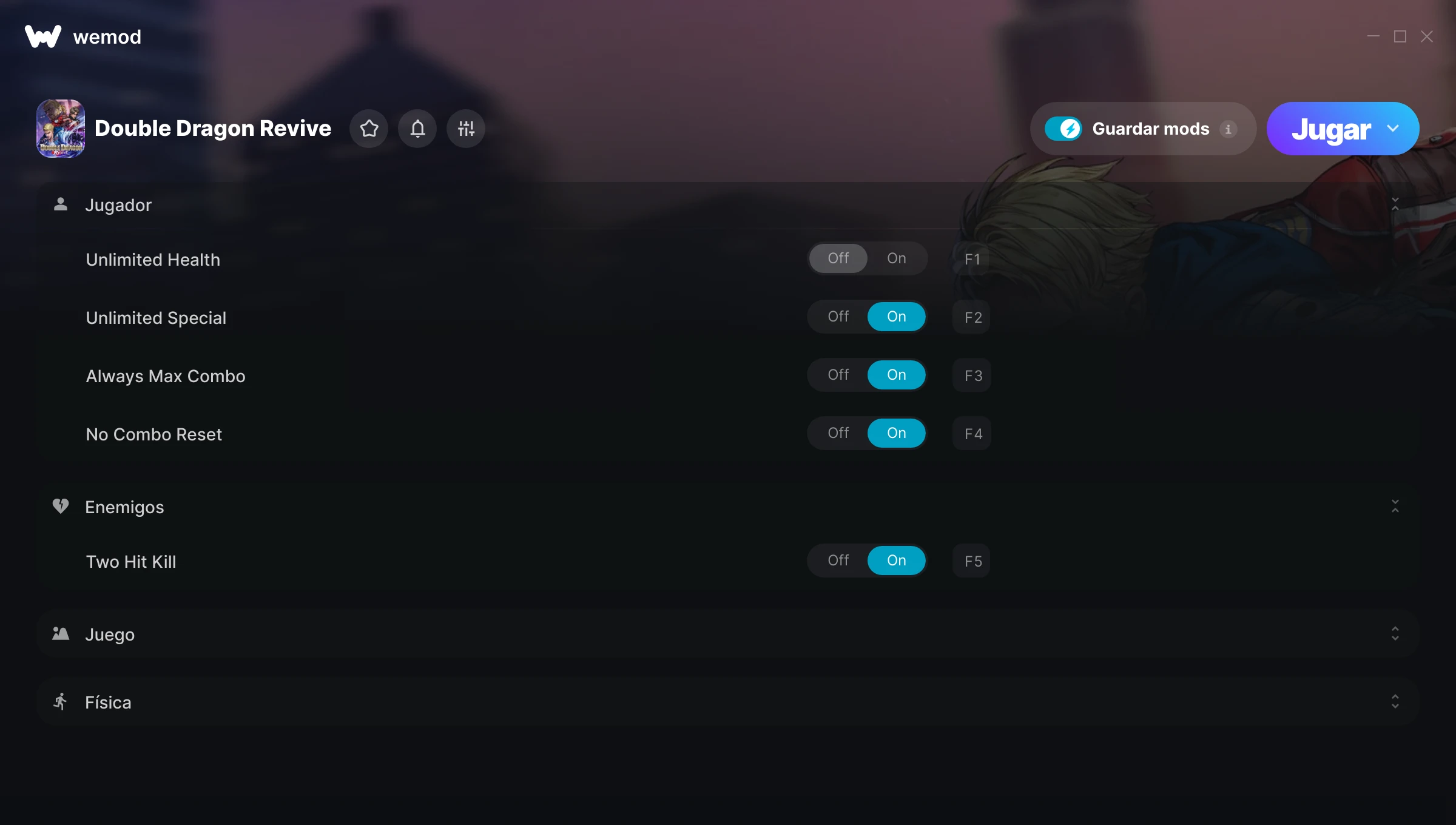 ¿Cómo puedo usar las trampas para Double Dragon Revive?WeMod mostrará todos los juegos en tu PC de forma segura. Abre un juego de la lista y simplemente pulsa jugar. Cuando el juego se haya cargado y estés in-game, podrás empezar a activar las diferentes trampas.¿Funcionará esto con mi versión del juego?WeMod utiliza tecnología avanzada para detectar la versión del juego que tienes y te informará si es compatible. Si no es así, todavía tendrás la opción de probarlo o solicitar una actualización.