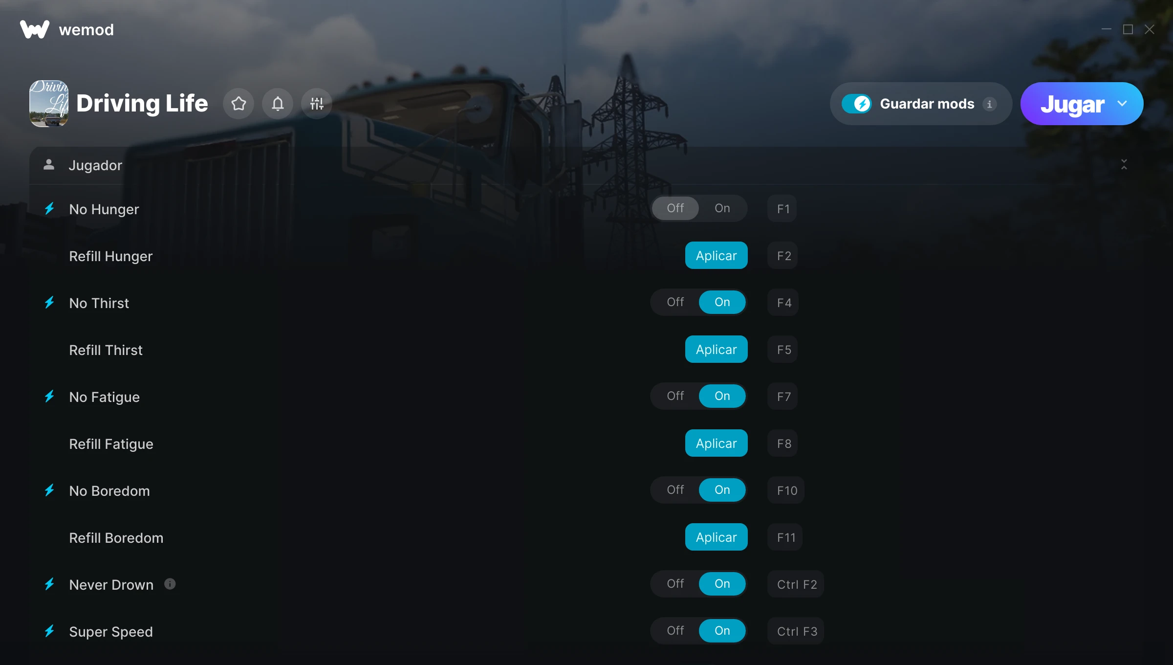 ¿Cómo puedo usar las trampas para Driving Life?WeMod mostrará todos los juegos en tu PC de forma segura. Abre un juego de la lista y simplemente pulsa jugar. Cuando el juego se haya cargado y estés in-game, podrás empezar a activar las diferentes trampas.¿Funcionará esto con mi versión del juego?WeMod utiliza tecnología avanzada para detectar la versión del juego que tienes y te informará si es compatible. Si no es así, todavía tendrás la opción de probarlo o solicitar una actualización.