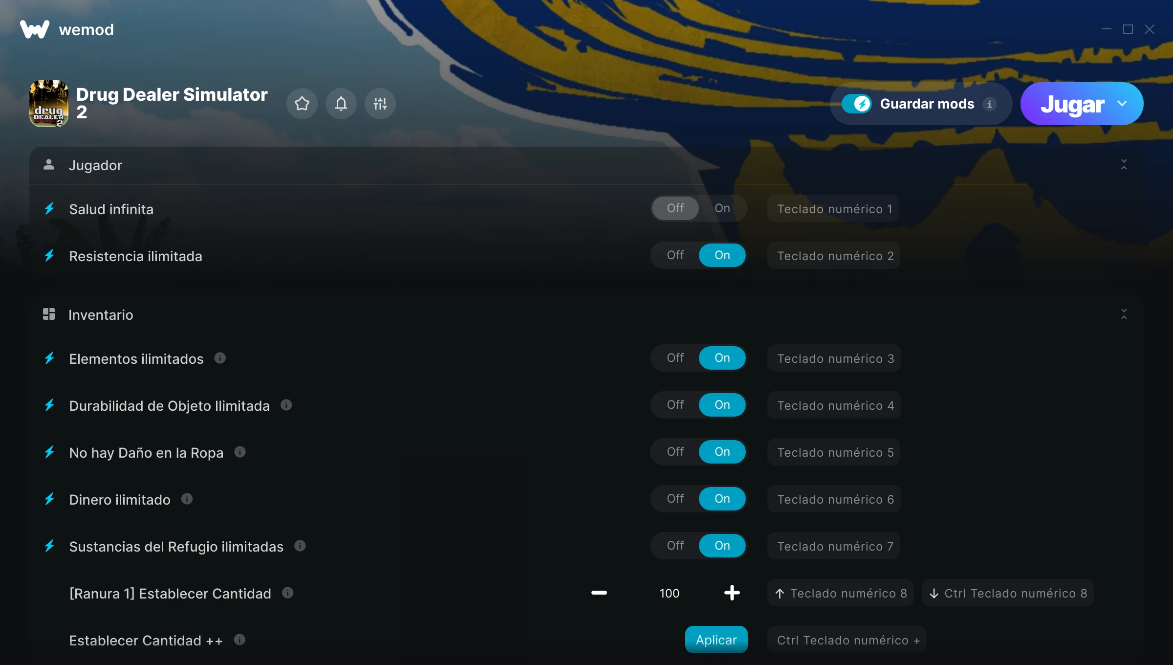 Activado Desactivado Salud ilimitada Energía ilimitada Alternar Mods