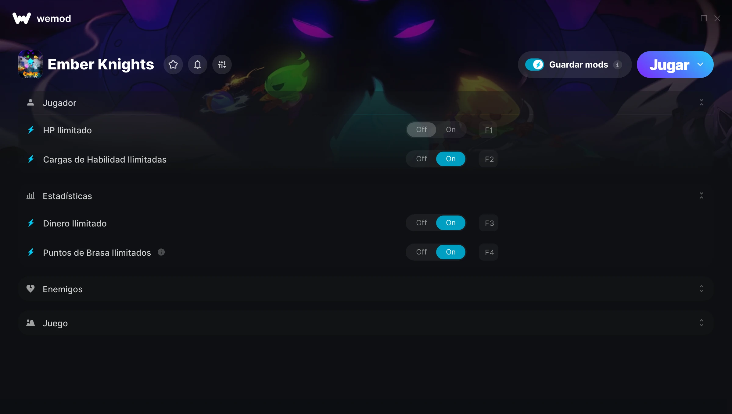 85MB Windows ...o visítanos en tu PC para descargar la aplicación Obtener HP Ilimitado, Cargas de Habilidad Ilimitadas & 4 otros mods for Ember Knights with WeMod