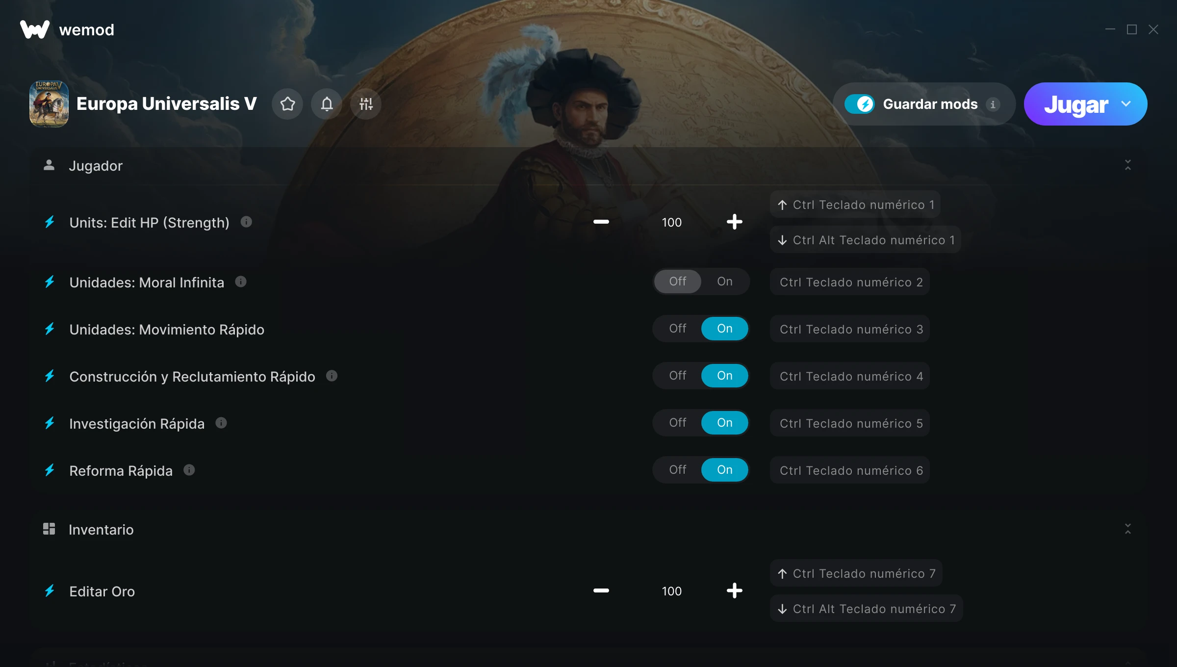 ¿Cómo puedo usar las trampas para Europa Universalis V?WeMod mostrará todos los juegos en tu PC de forma segura. Abre un juego de la lista y simplemente pulsa jugar. Cuando el juego se haya cargado y estés in-game, podrás empezar a activar las diferentes trampas.¿Funcionará esto con mi versión del juego?WeMod utiliza tecnología avanzada para detectar la versión del juego que tienes y te informará si es compatible. Si no es así, todavía tendrás la opción de probarlo o solicitar una actualización.