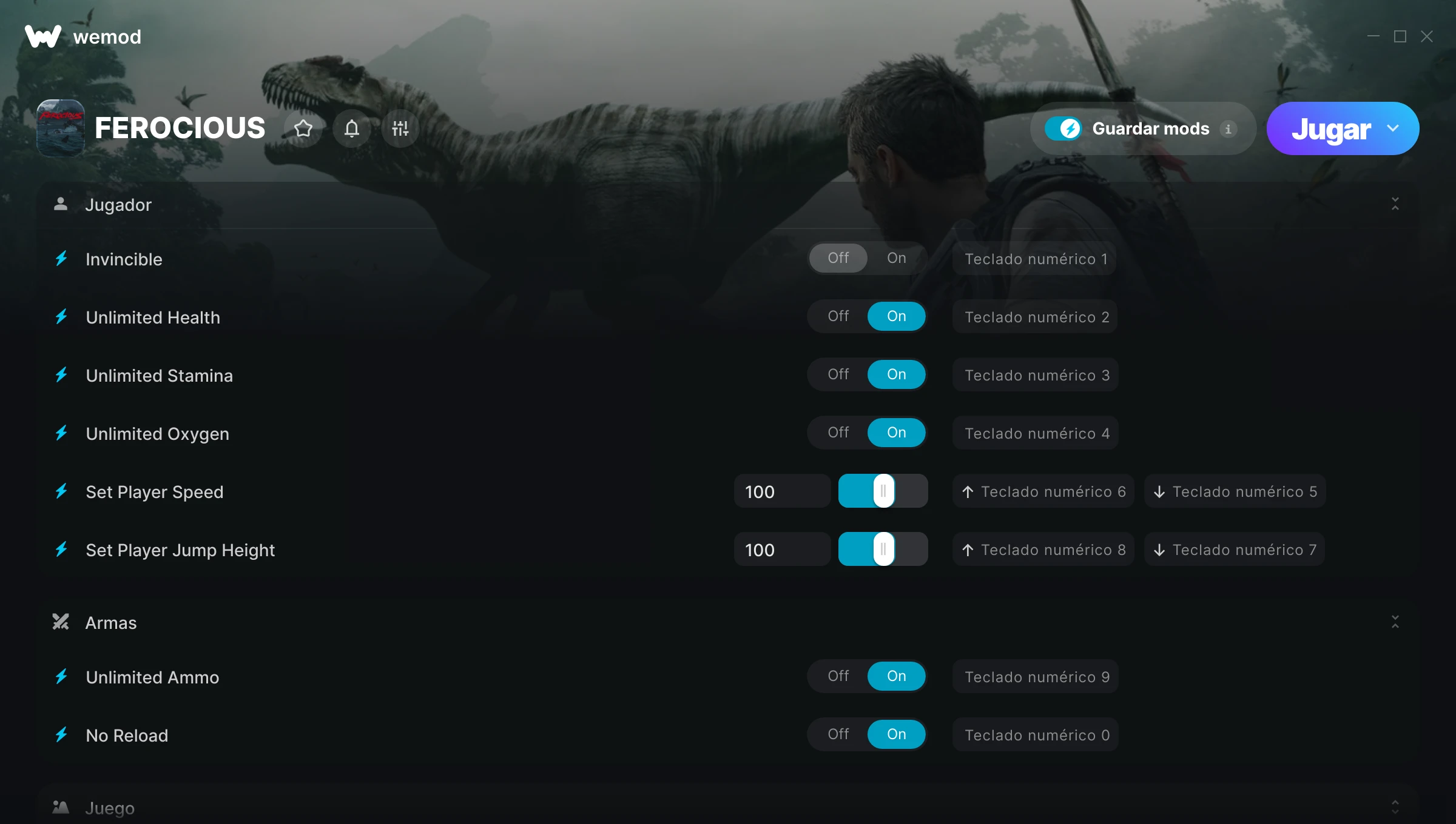 ¿Cómo puedo usar las trampas para FEROCIOUS?WeMod mostrará todos los juegos en tu PC de forma segura. Abre un juego de la lista y simplemente pulsa jugar. Cuando el juego se haya cargado y estés in-game, podrás empezar a activar las diferentes trampas.¿Funcionará esto con mi versión del juego?WeMod utiliza tecnología avanzada para detectar la versión del juego que tienes y te informará si es compatible. Si no es así, todavía tendrás la opción de probarlo o solicitar una actualización.