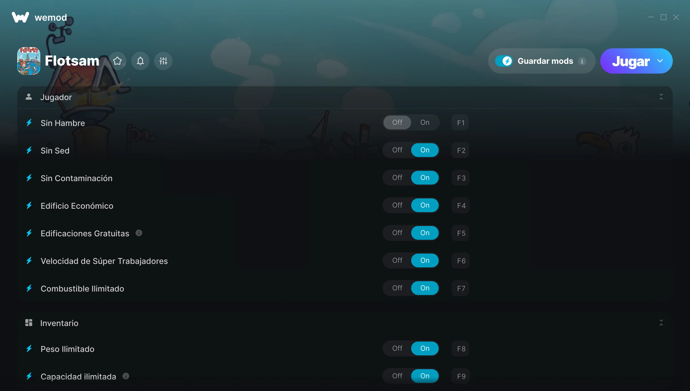 The level of water and food went down, despite my using Wemod. However the rest worked well enough.