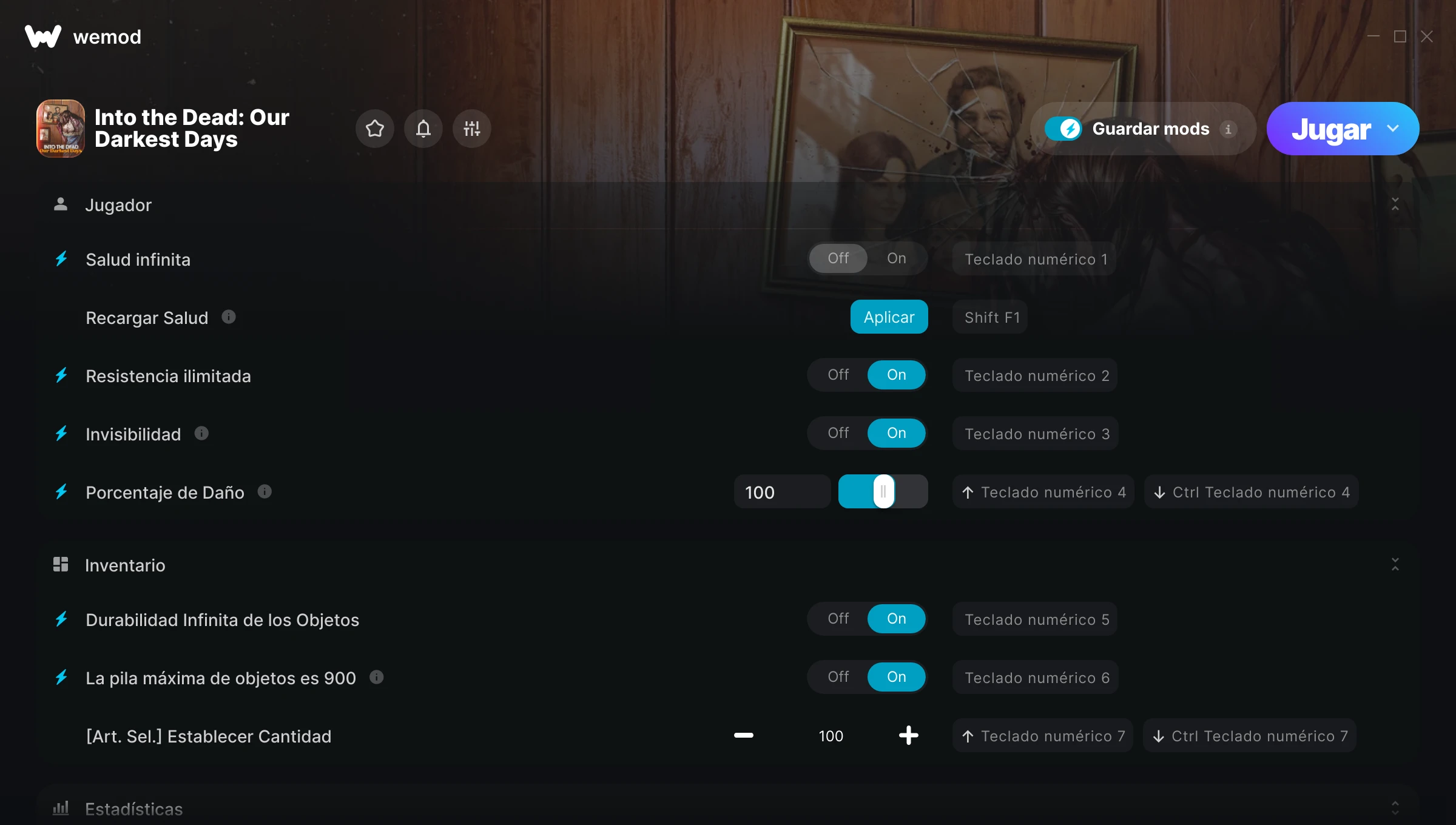Activado Desactivado Salud ilimitada Energía ilimitada Alternar Mods