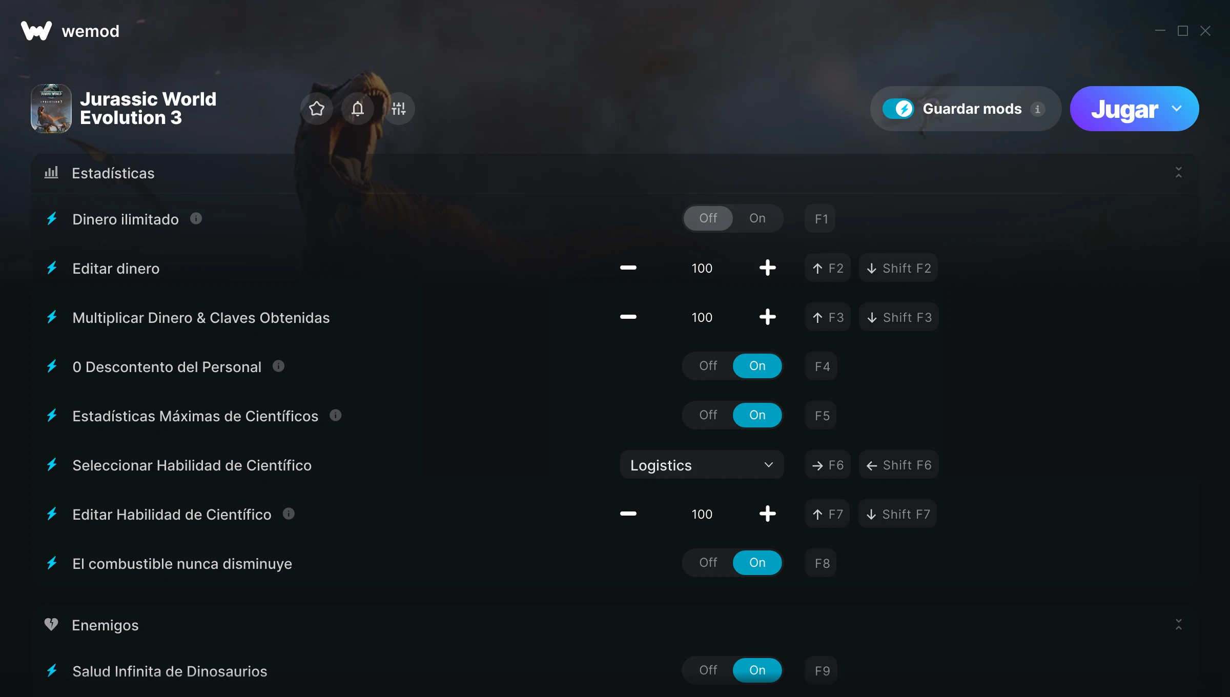 85MB Windows ...o visítanos en tu PC para descargar la aplicación Obtener Dinero ilimitado, Editar dinero & 13 otros mods for Jurassic World Evolution 3 with WeMod