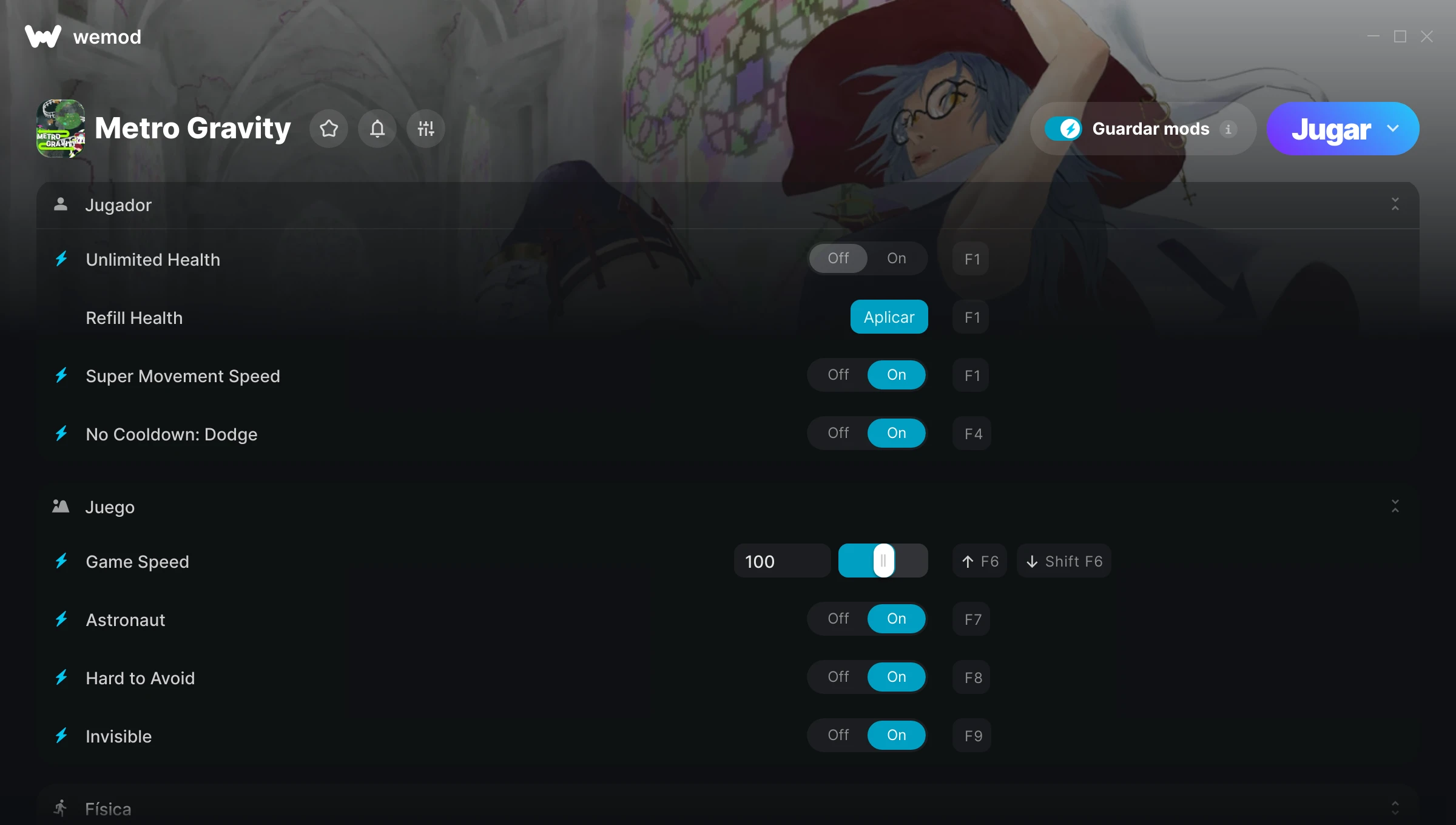 Activado Desactivado Salud ilimitada Energía ilimitada Alternar Mods