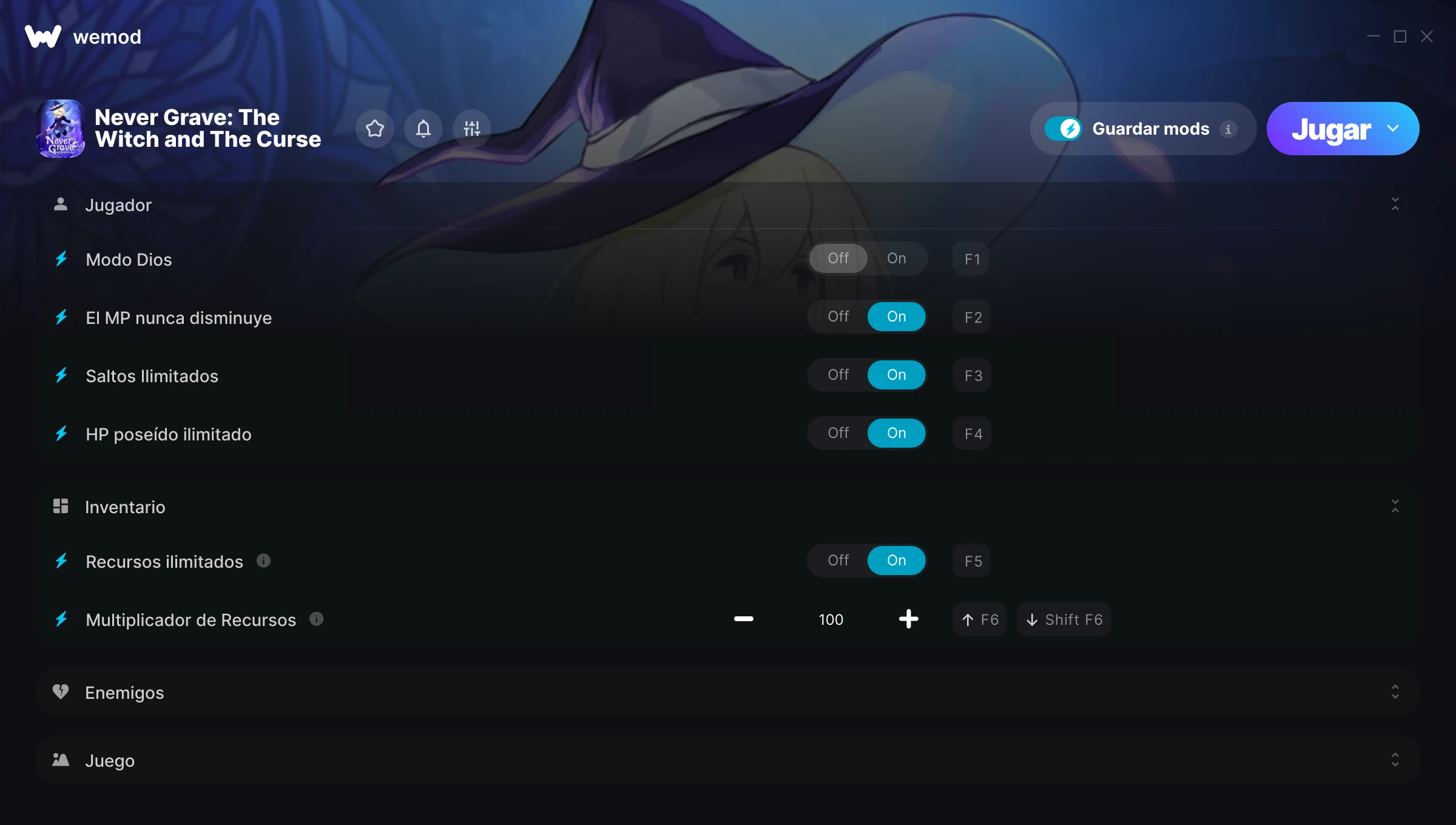 ¿Cómo puedo usar las trampas para Never Grave: The Witch and The Curse?WeMod mostrará todos los juegos en tu PC de forma segura. Abre un juego de la lista y simplemente pulsa jugar. Cuando el juego se haya cargado y estés in-game, podrás empezar a activar las diferentes trampas.¿Funcionará esto con mi versión del juego?WeMod utiliza tecnología avanzada para detectar la versión del juego que tienes y te informará si es compatible. Si no es así, todavía tendrás la opción de probarlo o solicitar una actualización.