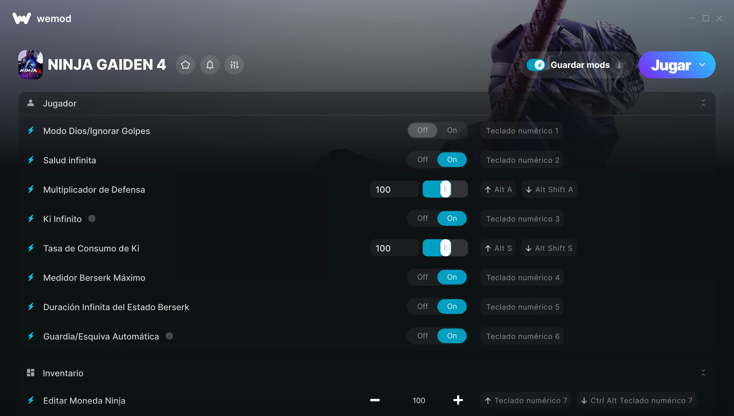 85MB Windows ...o visítanos en tu PC para descargar la aplicación Obtener Modo Dios/Ignorar Golpes, Salud infinita & 16 otros mods for NINJA GAIDEN 4 with WeMod