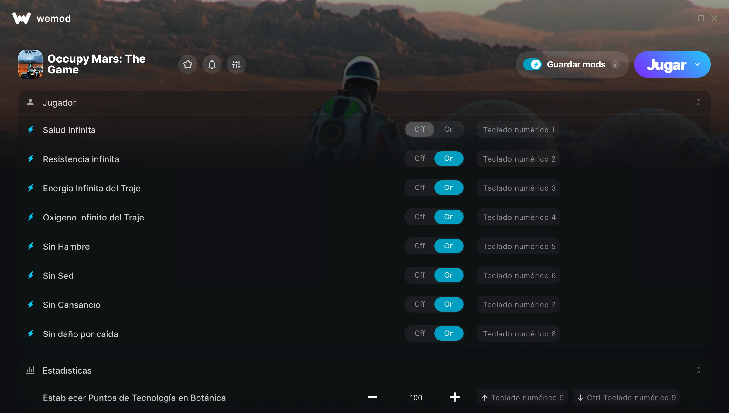 Activado Desactivado Salud ilimitada Energía ilimitada Alternar Mods