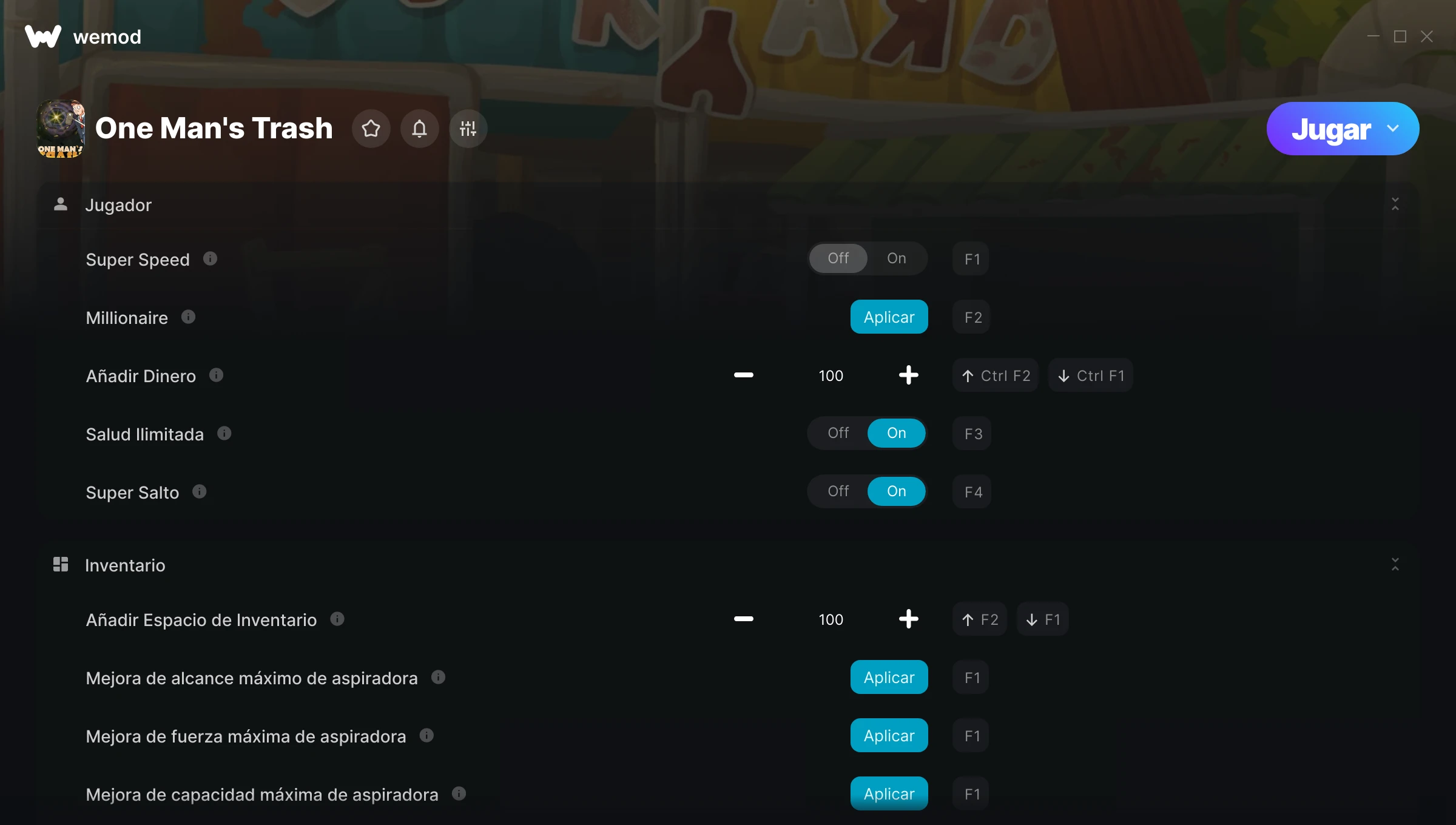 ¿Cómo puedo usar las trampas para One Man's Trash?WeMod mostrará todos los juegos en tu PC de forma segura. Abre un juego de la lista y simplemente pulsa jugar. Cuando el juego se haya cargado y estés in-game, podrás empezar a activar las diferentes trampas.¿Funcionará esto con mi versión del juego?WeMod utiliza tecnología avanzada para detectar la versión del juego que tienes y te informará si es compatible. Si no es así, todavía tendrás la opción de probarlo o solicitar una actualización.