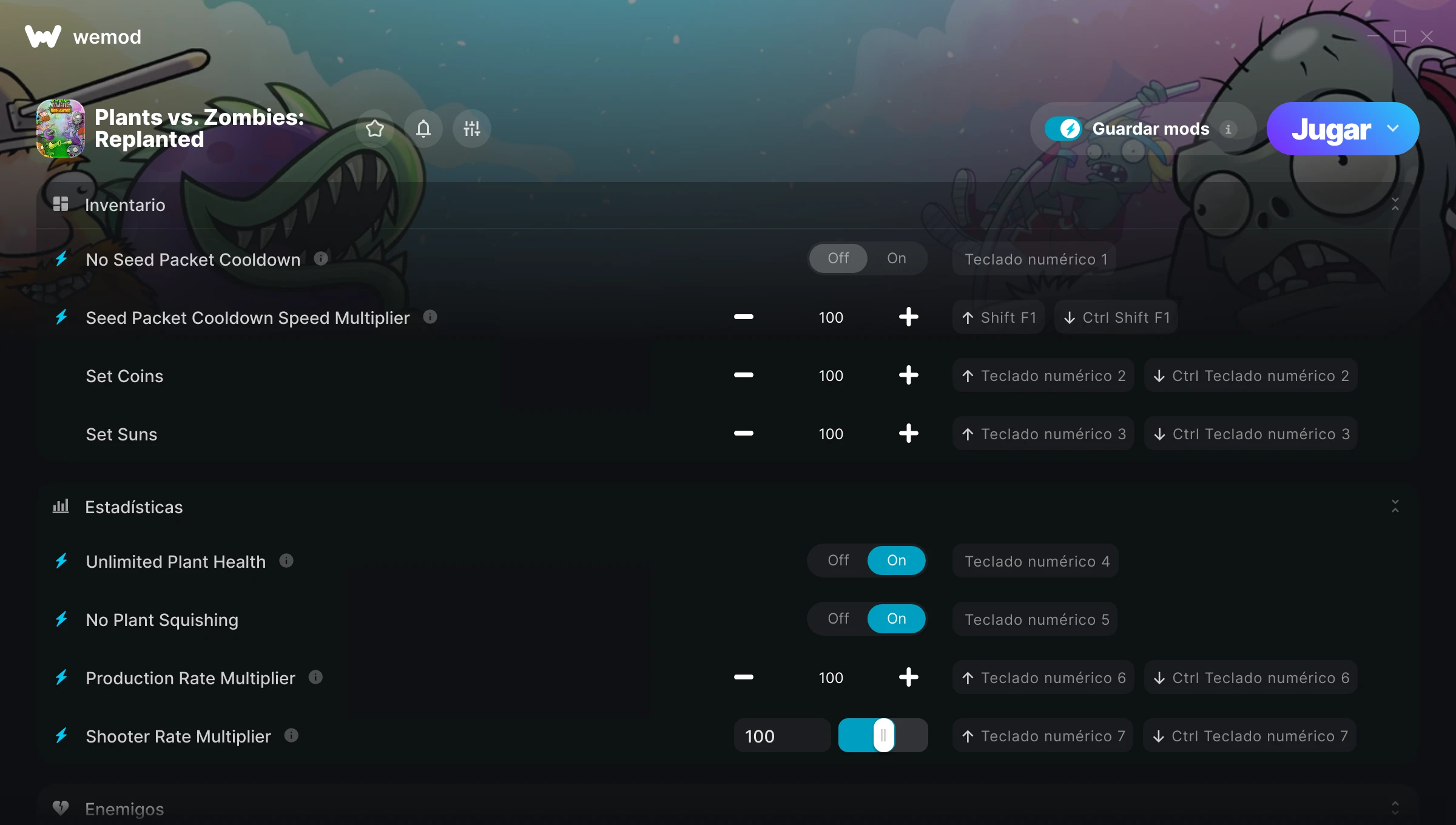 ¿Cómo puedo usar las trampas para Plants vs. Zombies: Replanted?WeMod mostrará todos los juegos en tu PC de forma segura. Abre un juego de la lista y simplemente pulsa jugar. Cuando el juego se haya cargado y estés in-game, podrás empezar a activar las diferentes trampas.¿Funcionará esto con mi versión del juego?WeMod utiliza tecnología avanzada para detectar la versión del juego que tienes y te informará si es compatible. Si no es así, todavía tendrás la opción de probarlo o solicitar una actualización.