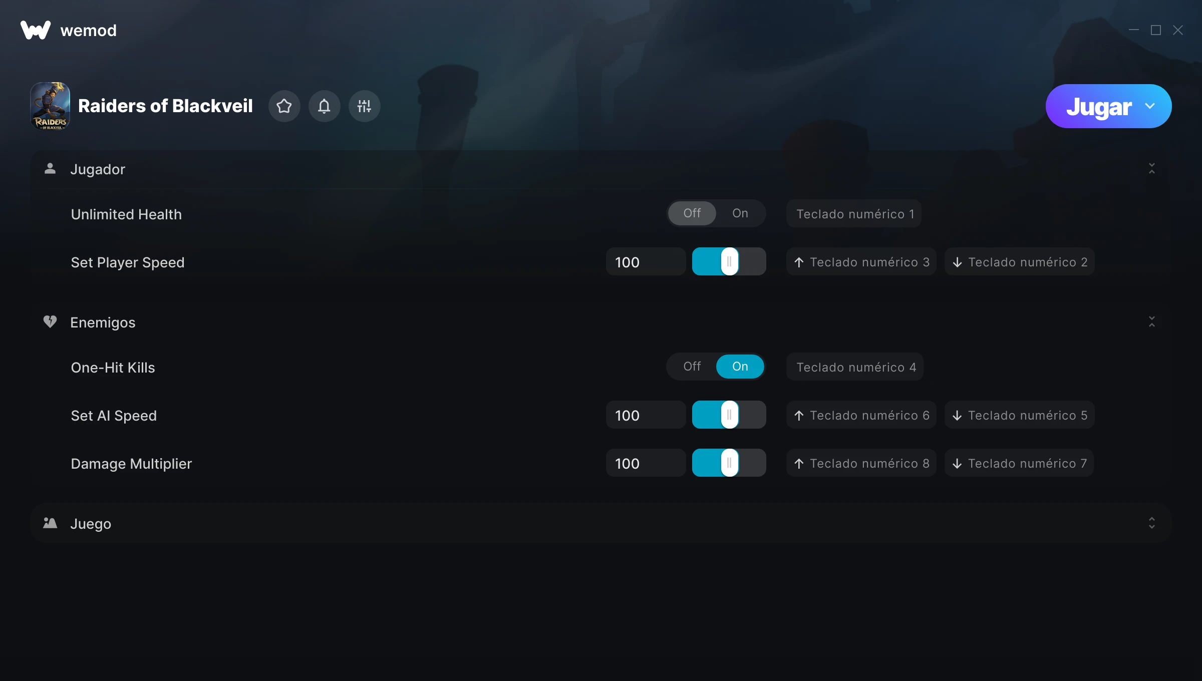 ¿Cómo puedo usar las trampas para Raiders of Blackveil?WeMod mostrará todos los juegos en tu PC de forma segura. Abre un juego de la lista y simplemente pulsa jugar. Cuando el juego se haya cargado y estés in-game, podrás empezar a activar las diferentes trampas.¿Funcionará esto con mi versión del juego?WeMod utiliza tecnología avanzada para detectar la versión del juego que tienes y te informará si es compatible. Si no es así, todavía tendrás la opción de probarlo o solicitar una actualización.