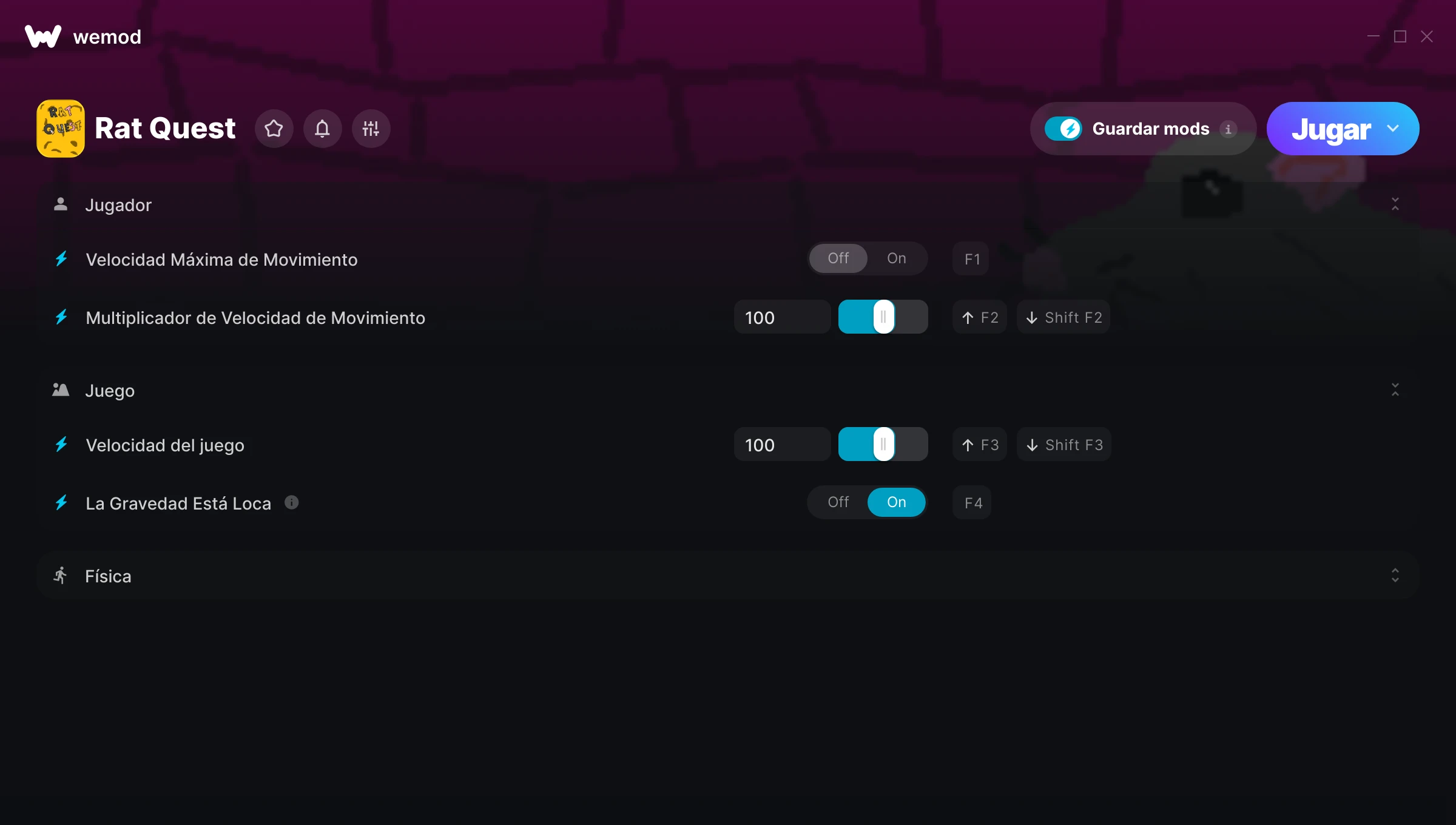 ¿Cómo puedo usar las trampas para Rat Quest?WeMod mostrará todos los juegos en tu PC de forma segura. Abre un juego de la lista y simplemente pulsa jugar. Cuando el juego se haya cargado y estés in-game, podrás empezar a activar las diferentes trampas.¿Funcionará esto con mi versión del juego?WeMod utiliza tecnología avanzada para detectar la versión del juego que tienes y te informará si es compatible. Si no es así, todavía tendrás la opción de probarlo o solicitar una actualización.