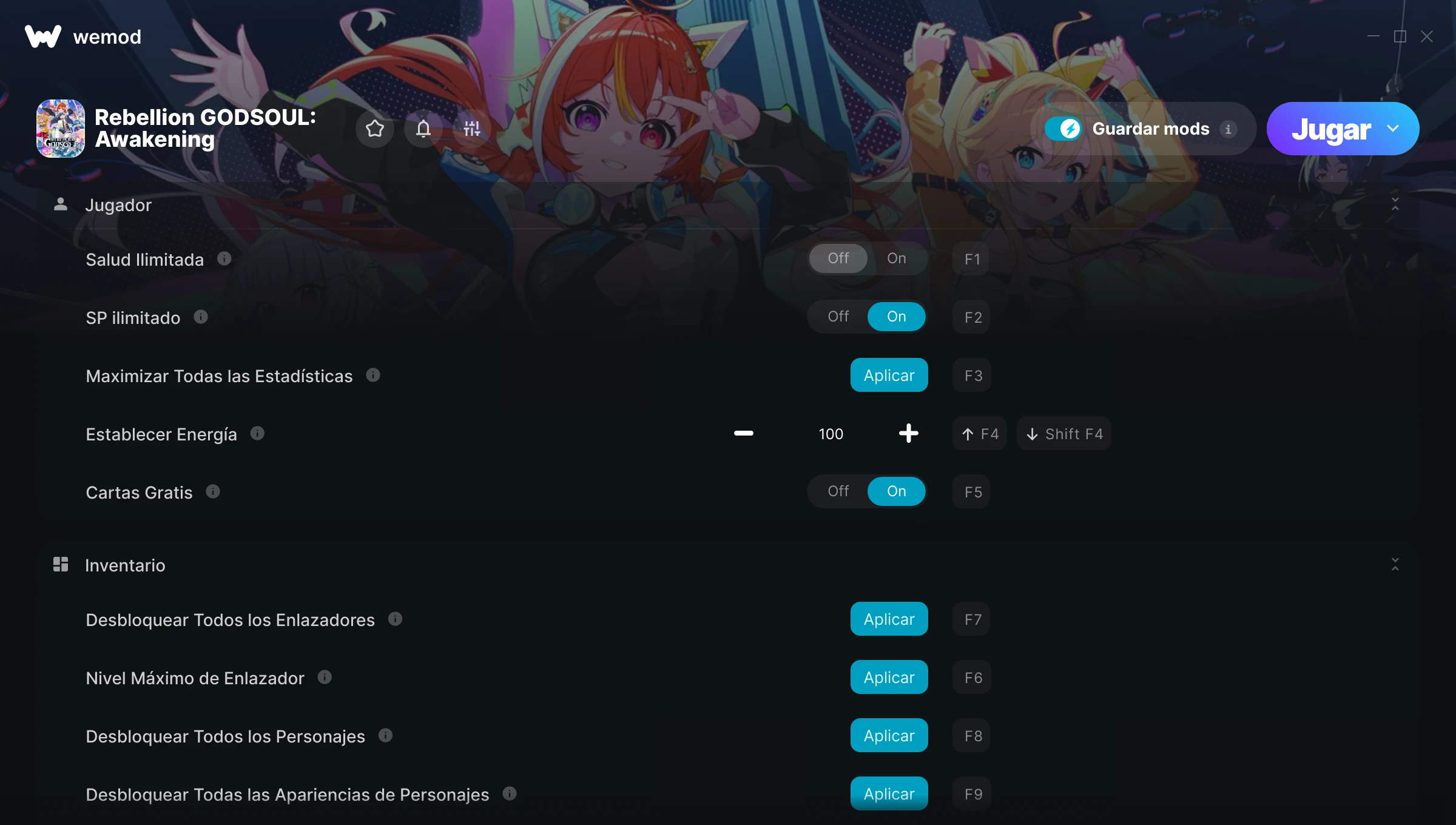 ¿Cómo puedo usar las trampas para Rebellion GODSOUL: Awakening?WeMod mostrará todos los juegos en tu PC de forma segura. Abre un juego de la lista y simplemente pulsa jugar. Cuando el juego se haya cargado y estés in-game, podrás empezar a activar las diferentes trampas.¿Funcionará esto con mi versión del juego?WeMod utiliza tecnología avanzada para detectar la versión del juego que tienes y te informará si es compatible. Si no es así, todavía tendrás la opción de probarlo o solicitar una actualización.
