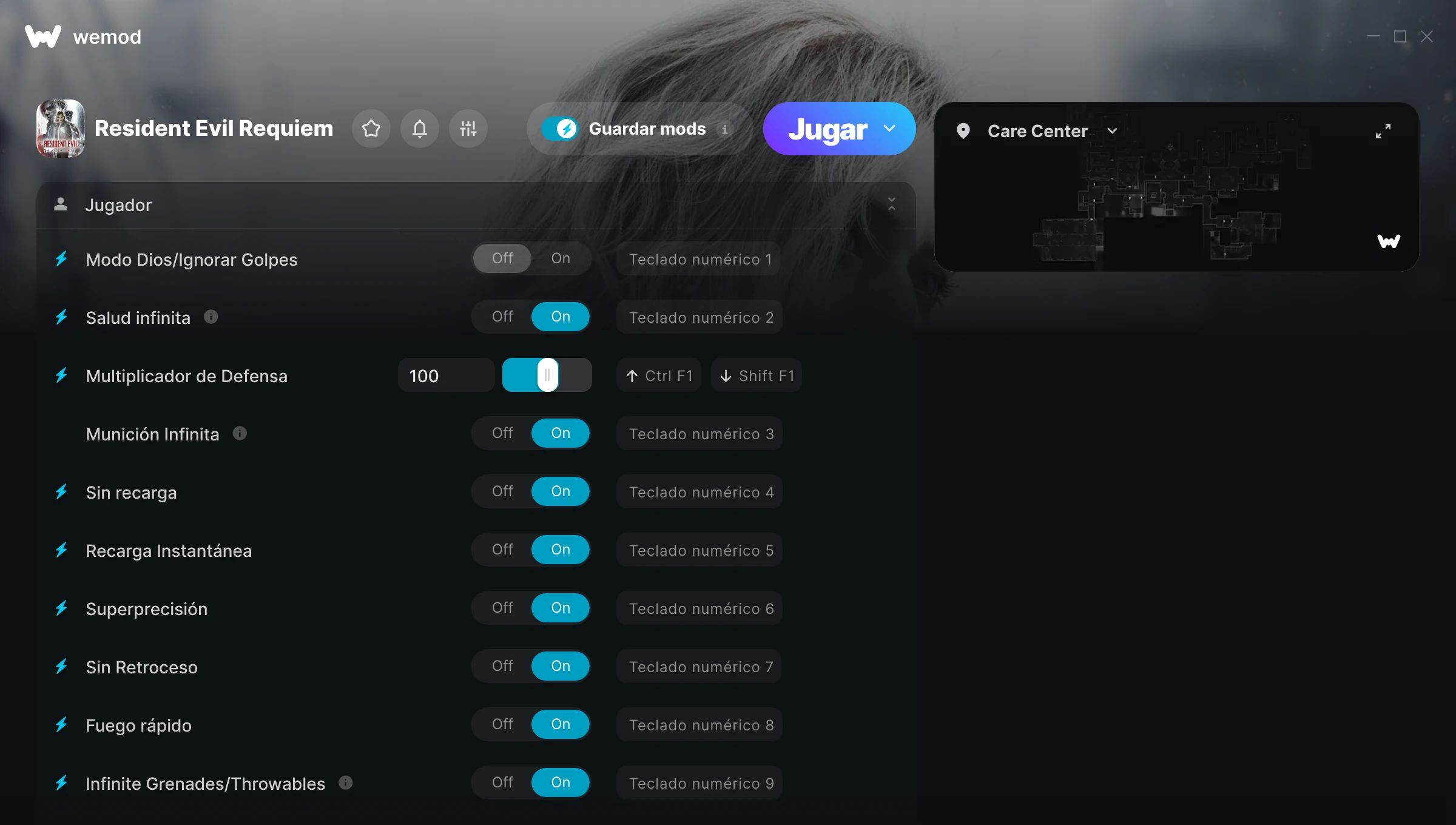 ¿Cómo puedo usar las trampas para Resident Evil Requiem?WeMod mostrará todos los juegos en tu PC de forma segura. Abre un juego de la lista y simplemente pulsa jugar. Cuando el juego se haya cargado y estés in-game, podrás empezar a activar las diferentes trampas.¿Funcionará esto con mi versión del juego?WeMod utiliza tecnología avanzada para detectar la versión del juego que tienes y te informará si es compatible. Si no es así, todavía tendrás la opción de probarlo o solicitar una actualización.