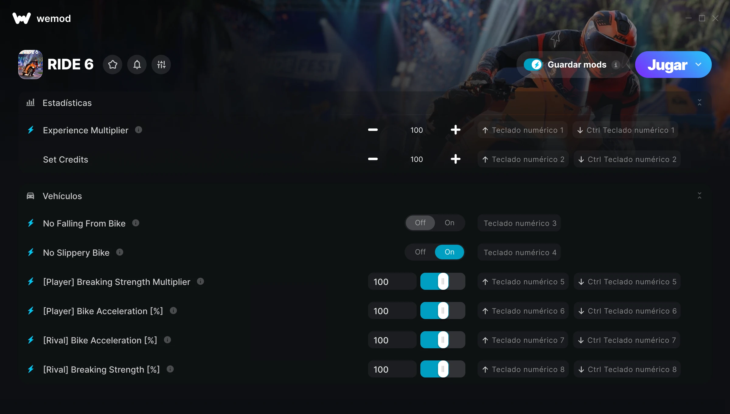 85MB Windows ...o visítanos en tu PC para descargar la aplicación Obtener Experience Multiplier, Set Credits & 6 otros mods for RIDE 6 with WeMod