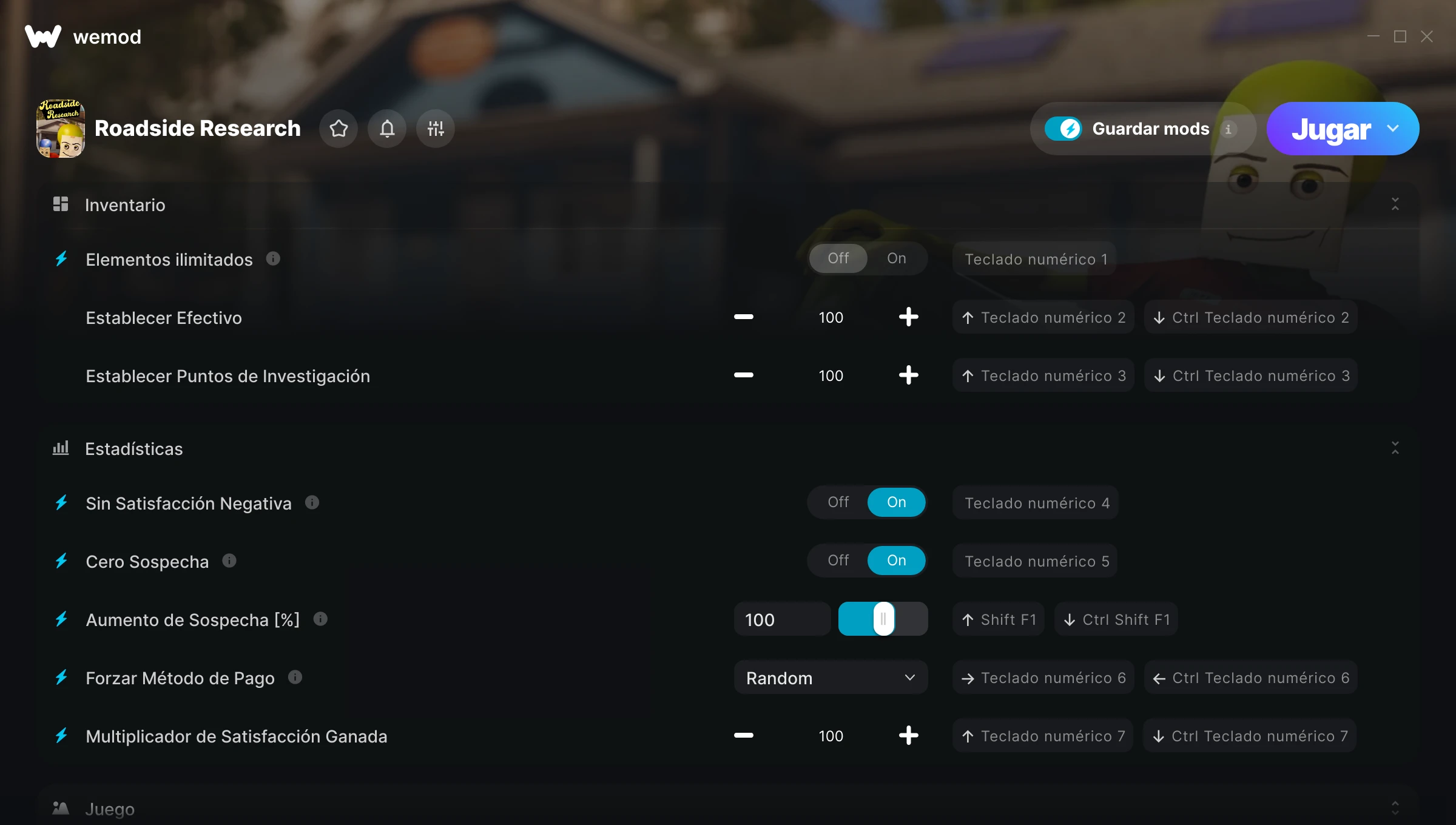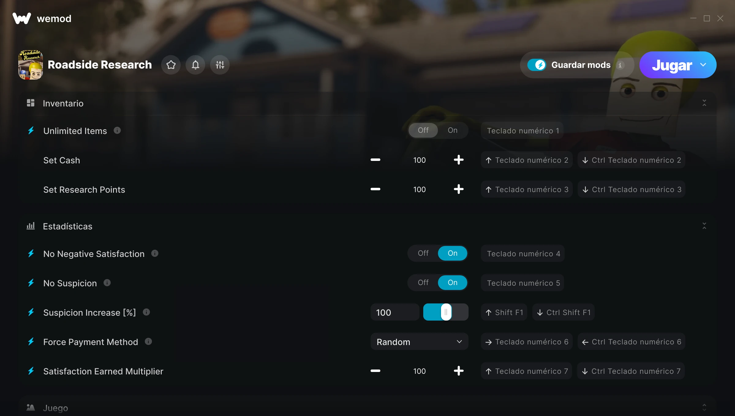¿Cómo puedo usar las trampas para Roadside Research?WeMod mostrará todos los juegos en tu PC de forma segura. Abre un juego de la lista y simplemente pulsa jugar. Cuando el juego se haya cargado y estés in-game, podrás empezar a activar las diferentes trampas.¿Funcionará esto con mi versión del juego?WeMod utiliza tecnología avanzada para detectar la versión del juego que tienes y te informará si es compatible. Si no es así, todavía tendrás la opción de probarlo o solicitar una actualización.