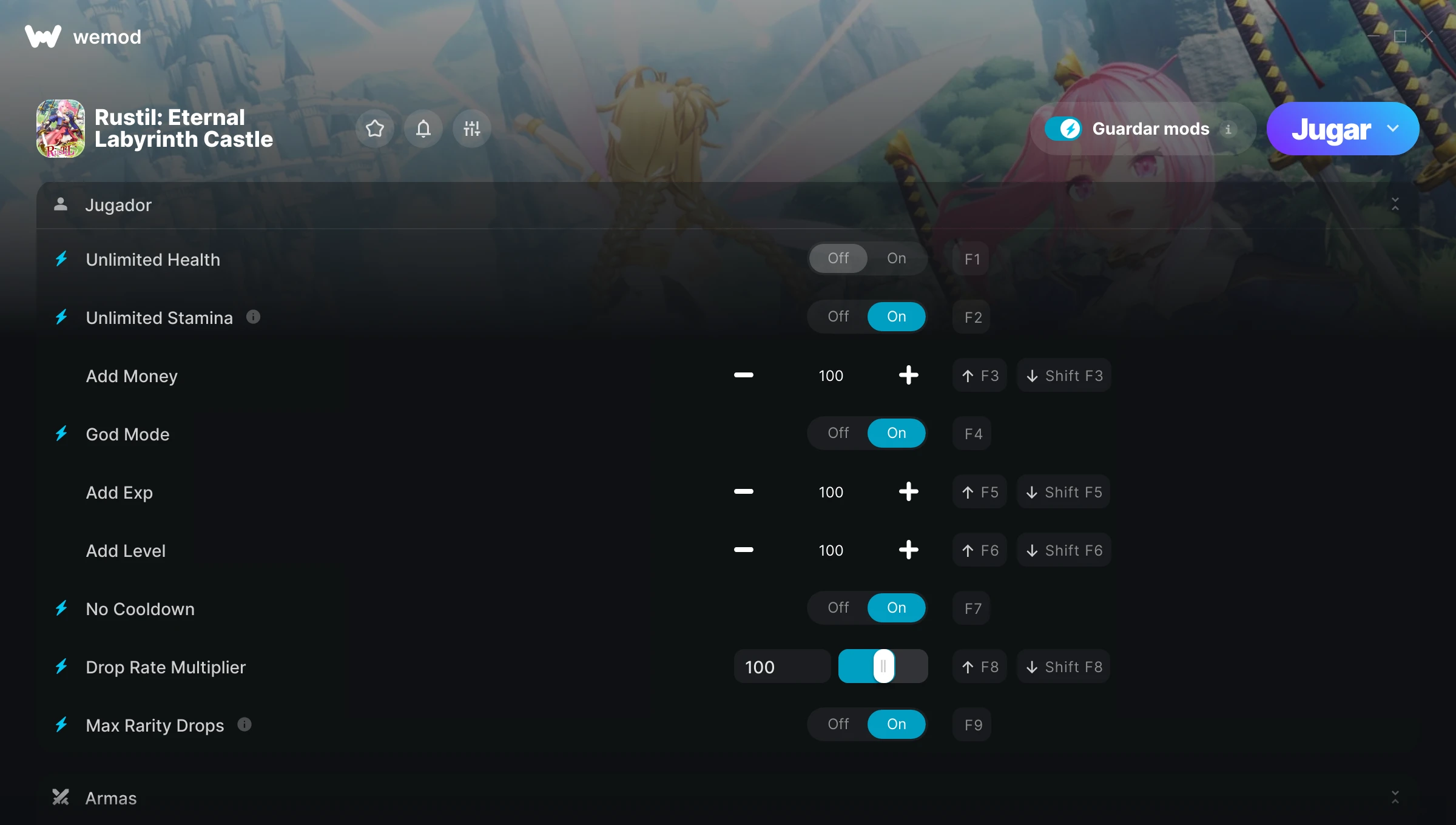 ¿Cómo puedo usar las trampas para Rustil: Eternal Labyrinth Castle?WeMod mostrará todos los juegos en tu PC de forma segura. Abre un juego de la lista y simplemente pulsa jugar. Cuando el juego se haya cargado y estés in-game, podrás empezar a activar las diferentes trampas.¿Funcionará esto con mi versión del juego?WeMod utiliza tecnología avanzada para detectar la versión del juego que tienes y te informará si es compatible. Si no es así, todavía tendrás la opción de probarlo o solicitar una actualización.