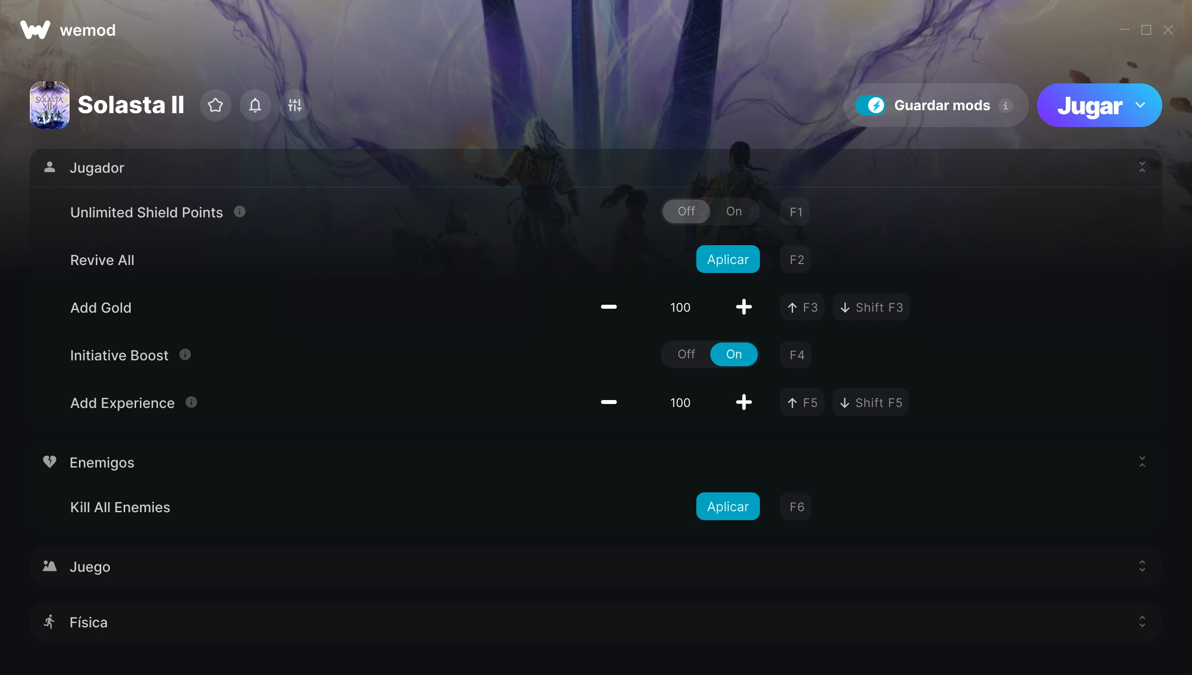 ¿Cómo puedo usar las trampas para Solasta II?WeMod mostrará todos los juegos en tu PC de forma segura. Abre un juego de la lista y simplemente pulsa jugar. Cuando el juego se haya cargado y estés in-game, podrás empezar a activar las diferentes trampas.¿Funcionará esto con mi versión del juego?WeMod utiliza tecnología avanzada para detectar la versión del juego que tienes y te informará si es compatible. Si no es así, todavía tendrás la opción de probarlo o solicitar una actualización.