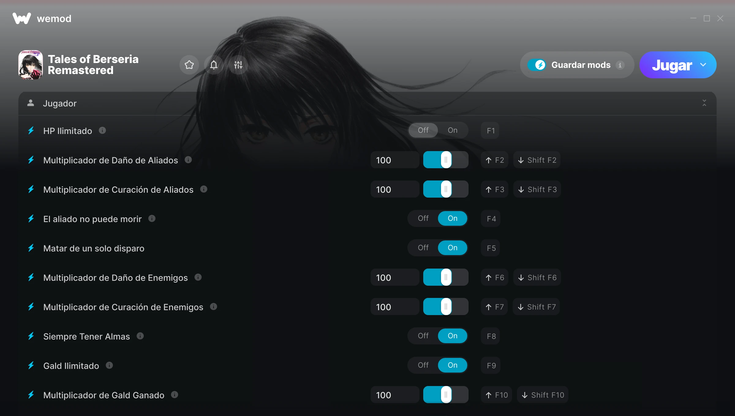¿Cómo puedo usar las trampas para Tales of Berseria Remastered?WeMod mostrará todos los juegos en tu PC de forma segura. Abre un juego de la lista y simplemente pulsa jugar. Cuando el juego se haya cargado y estés in-game, podrás empezar a activar las diferentes trampas.¿Funcionará esto con mi versión del juego?WeMod utiliza tecnología avanzada para detectar la versión del juego que tienes y te informará si es compatible. Si no es así, todavía tendrás la opción de probarlo o solicitar una actualización.