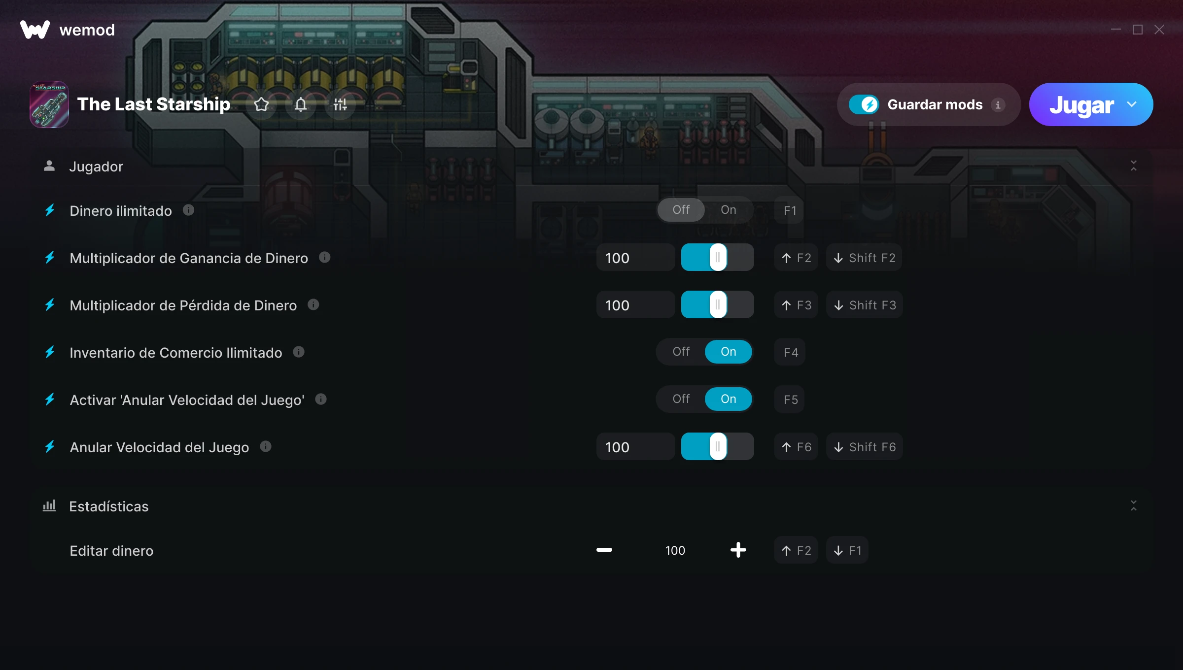 ¿Cómo puedo usar las trampas para The Last Starship?WeMod mostrará todos los juegos en tu PC de forma segura. Abre un juego de la lista y simplemente pulsa jugar. Cuando el juego se haya cargado y estés in-game, podrás empezar a activar las diferentes trampas.¿Funcionará esto con mi versión del juego?WeMod utiliza tecnología avanzada para detectar la versión del juego que tienes y te informará si es compatible. Si no es así, todavía tendrás la opción de probarlo o solicitar una actualización.