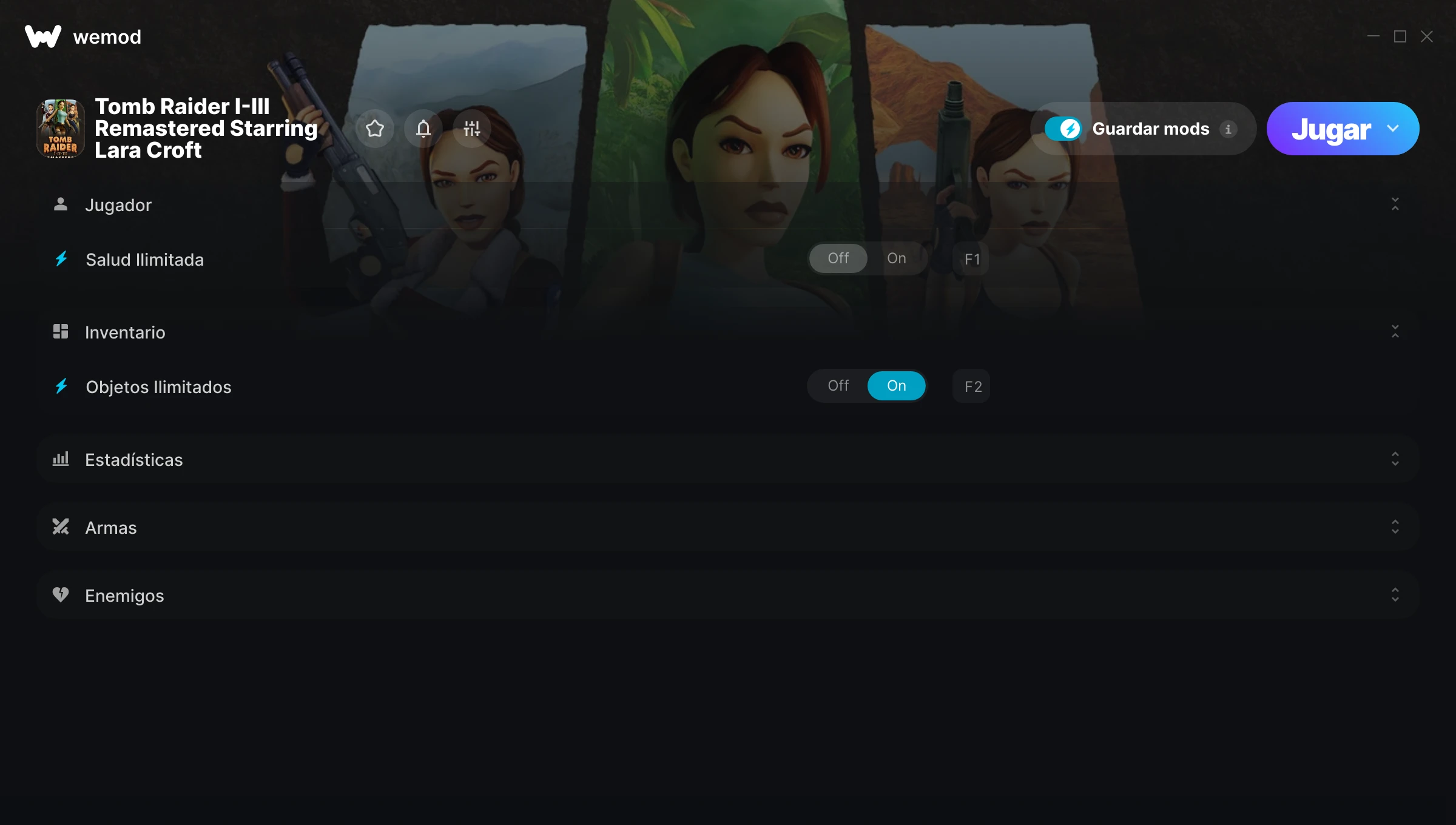 85MB Windows ...o visítanos en tu PC para descargar la aplicación Obtener Salud Ilimitada, Objetos Ilimitados & 3 otros mods for Tomb Raider I-III Remastered Starring Lara Croft with WeMod