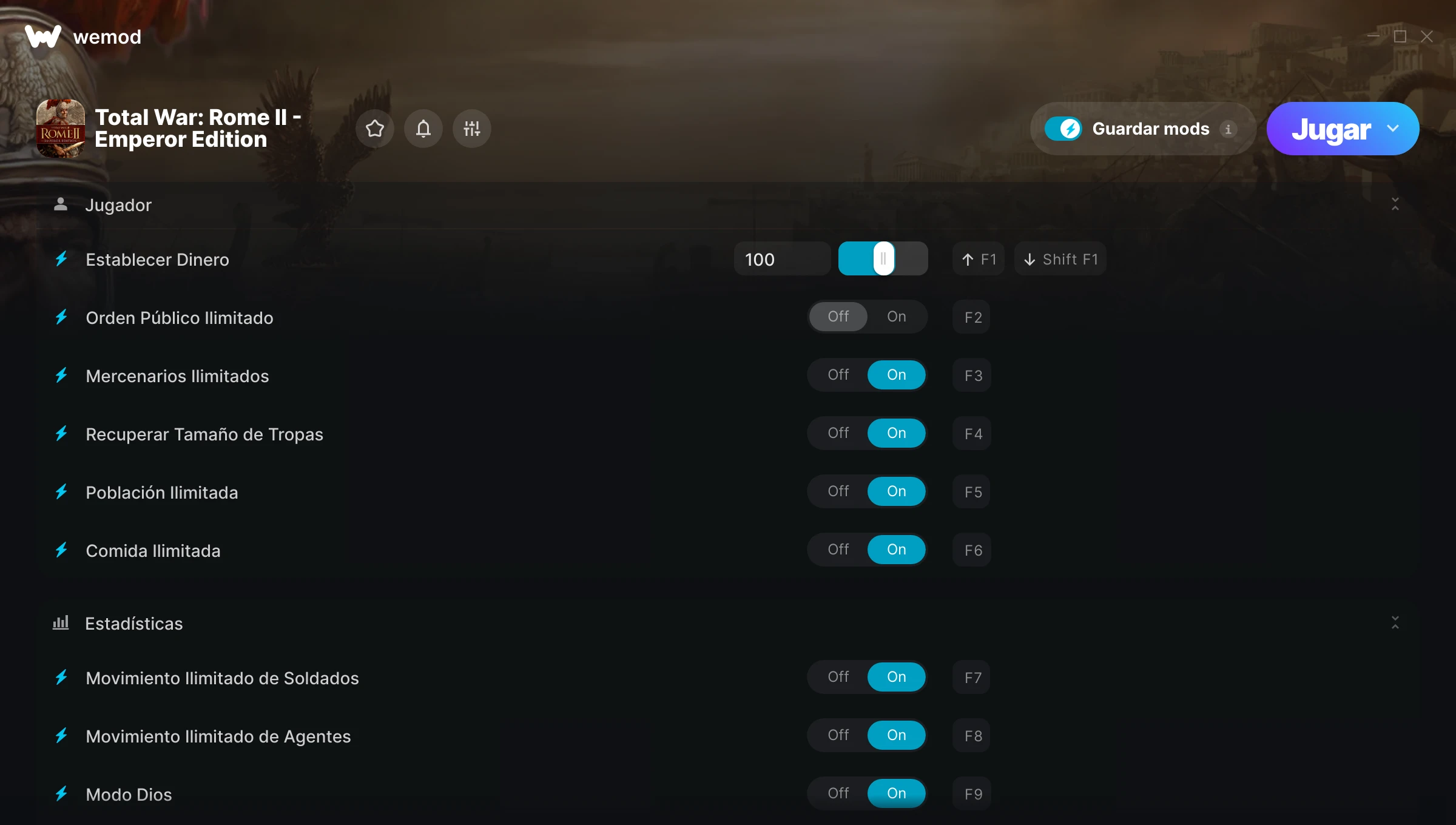 amazing thank you so much for this mod. I bought total war Rome 2 thinking I could use console commands i was wrong. so thank you much Wemod