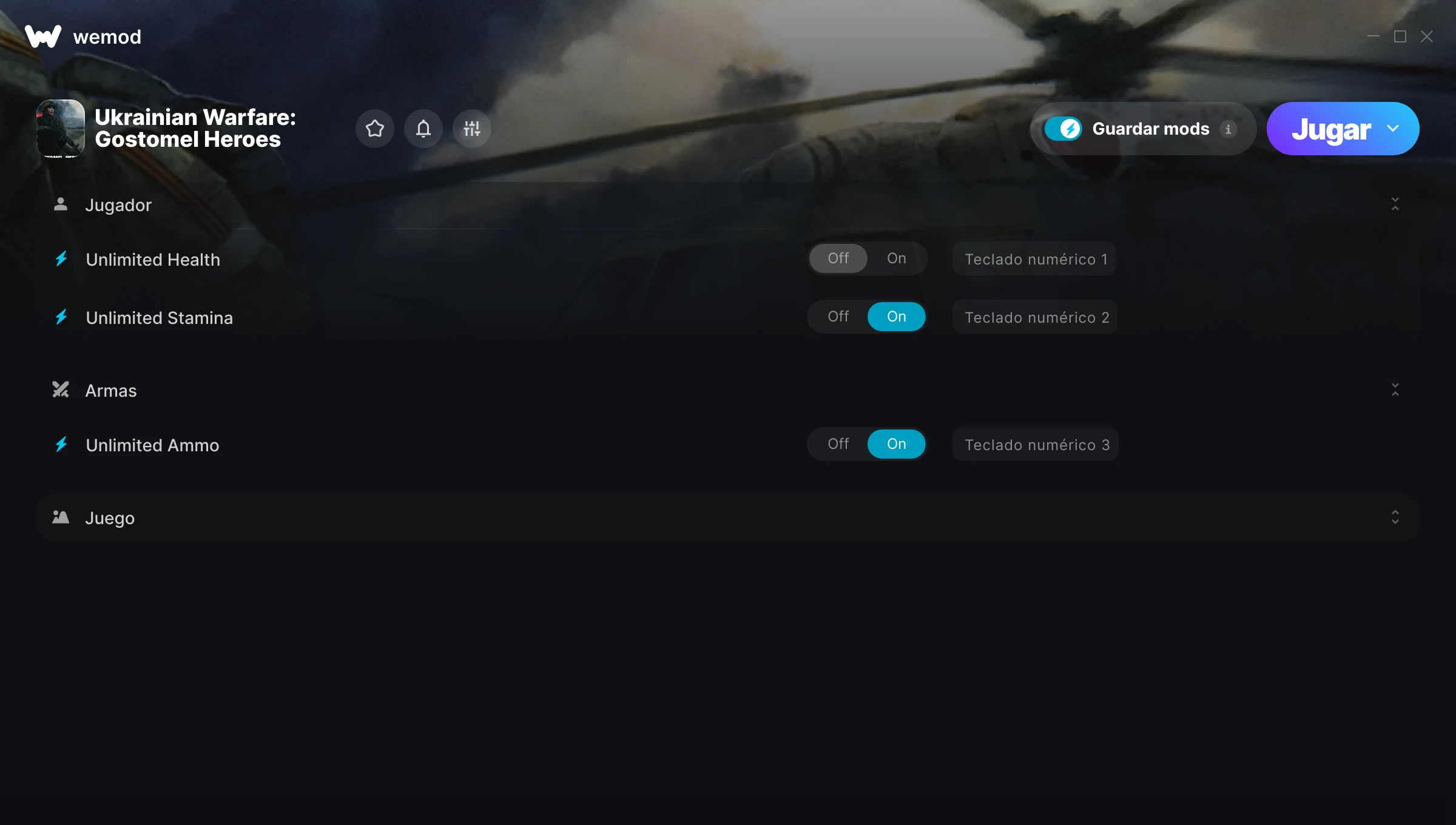 ¿Cómo puedo usar las trampas para Ukrainian Warfare: Gostomel Heroes?WeMod mostrará todos los juegos en tu PC de forma segura. Abre un juego de la lista y simplemente pulsa jugar. Cuando el juego se haya cargado y estés in-game, podrás empezar a activar las diferentes trampas.¿Funcionará esto con mi versión del juego?WeMod utiliza tecnología avanzada para detectar la versión del juego que tienes y te informará si es compatible. Si no es así, todavía tendrás la opción de probarlo o solicitar una actualización.