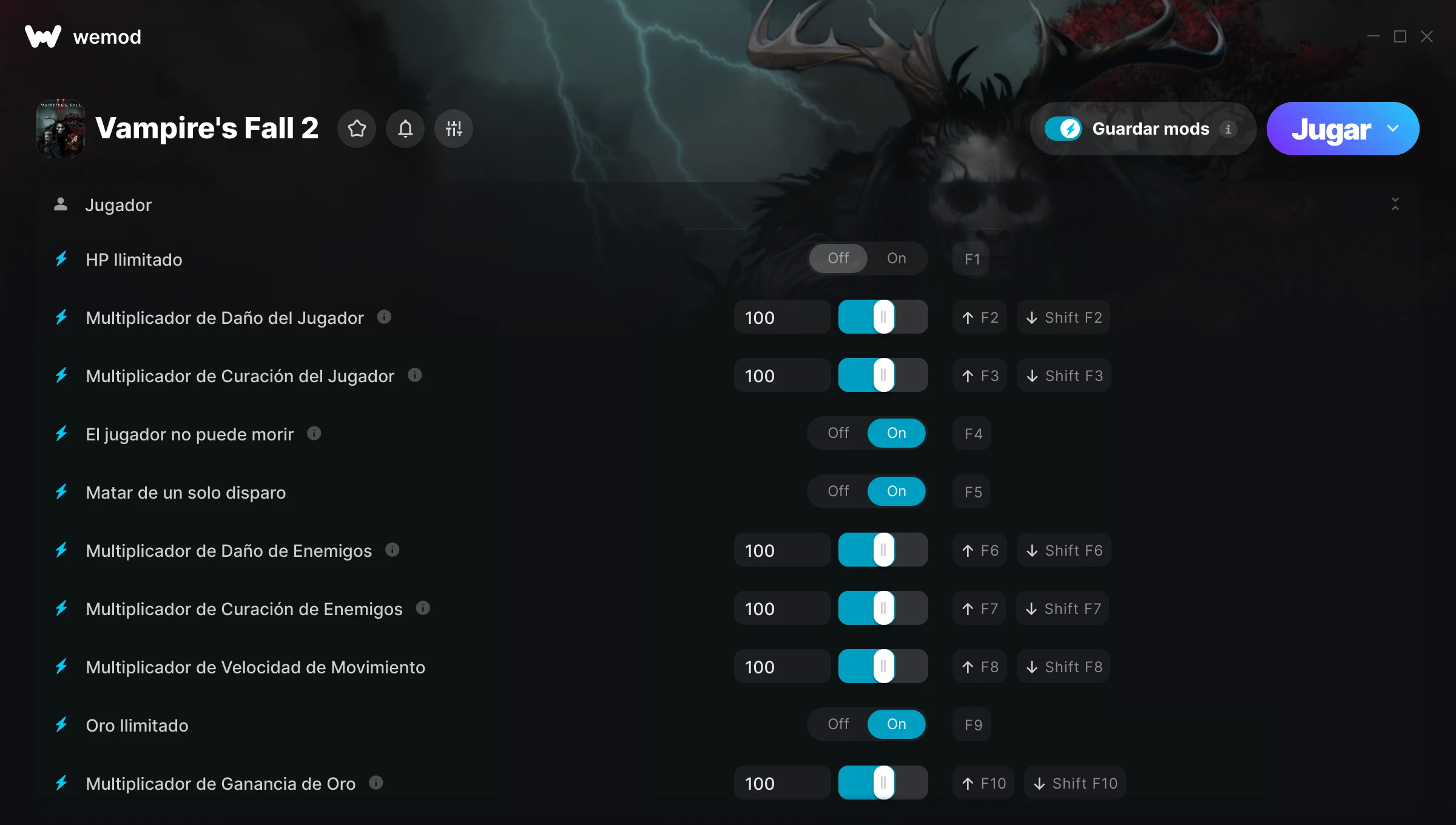¿Cómo puedo usar las trampas para Vampire's Fall 2?WeMod mostrará todos los juegos en tu PC de forma segura. Abre un juego de la lista y simplemente pulsa jugar. Cuando el juego se haya cargado y estés in-game, podrás empezar a activar las diferentes trampas.¿Funcionará esto con mi versión del juego?WeMod utiliza tecnología avanzada para detectar la versión del juego que tienes y te informará si es compatible. Si no es así, todavía tendrás la opción de probarlo o solicitar una actualización.
