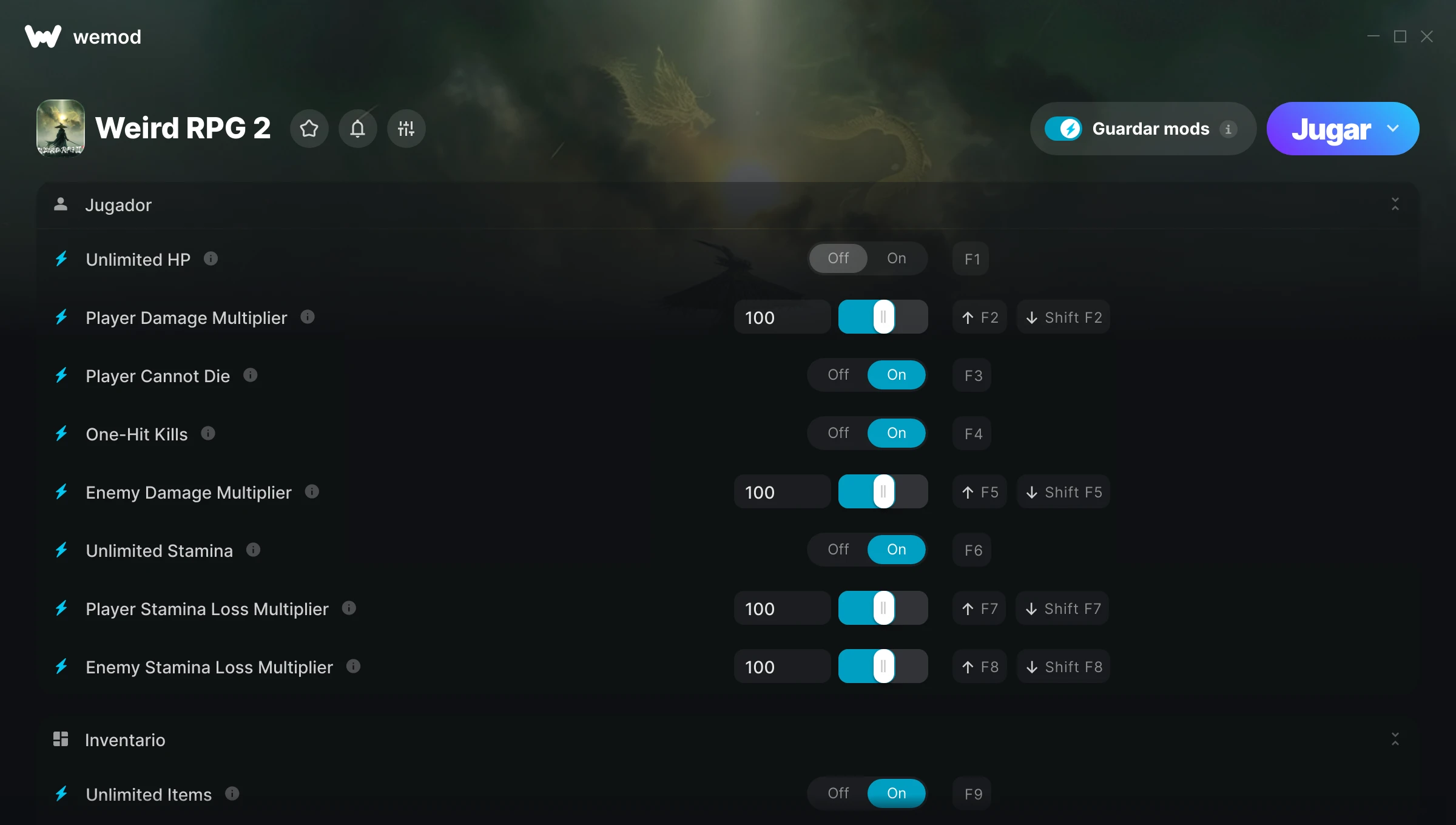 ¿Cómo puedo usar las trampas para Weird RPG 2?WeMod mostrará todos los juegos en tu PC de forma segura. Abre un juego de la lista y simplemente pulsa jugar. Cuando el juego se haya cargado y estés in-game, podrás empezar a activar las diferentes trampas.¿Funcionará esto con mi versión del juego?WeMod utiliza tecnología avanzada para detectar la versión del juego que tienes y te informará si es compatible. Si no es así, todavía tendrás la opción de probarlo o solicitar una actualización.