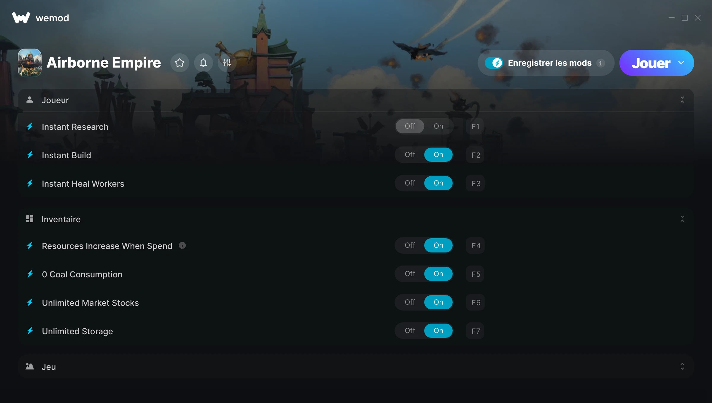 En savoir plusWeMod est une plateforme sécurisée et gratuite qui repose sur une communauté de millions de joueurs dans le monde. Nos abonnés Pro nous permettent de proposer nos mods au plus grand nombre. Pour en savoir plus, consultez nos avis sur Trustpilot.