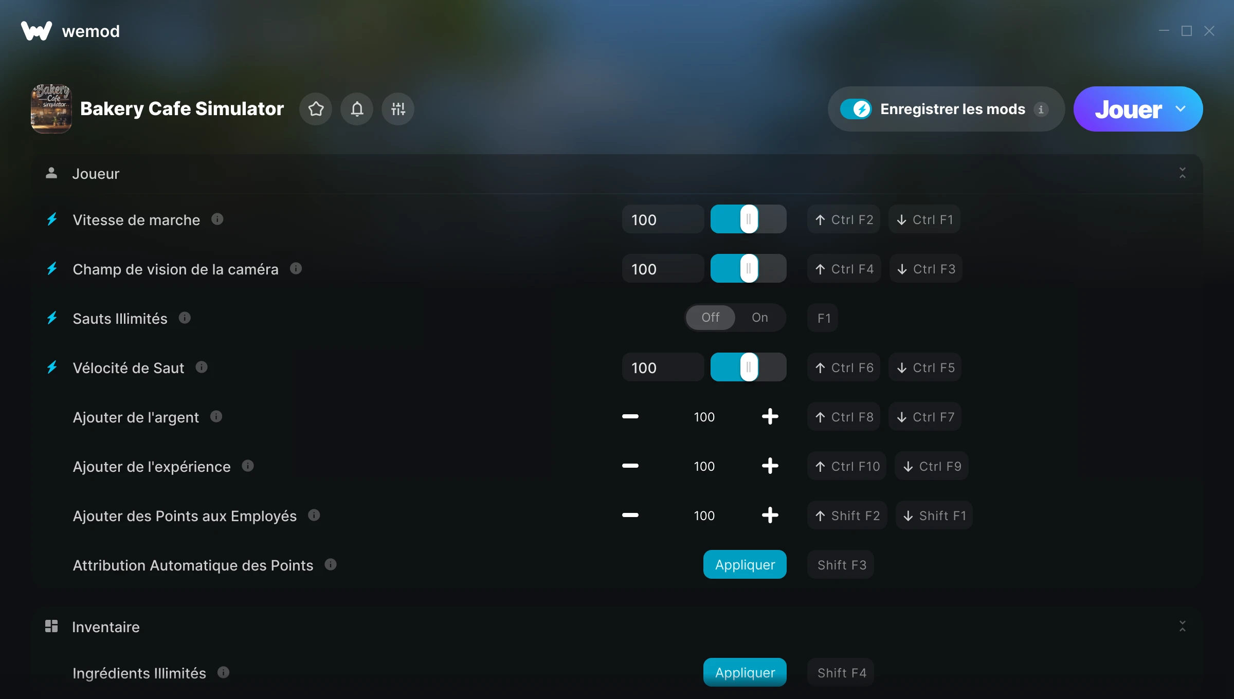 85MB Windows … ou visitez notre site sur votre PC pour télécharger l’application Obtenir Vitesse de marche, Champ de vision de la caméra & 14 autres mods for Bakery Cafe Simulator with WeMod