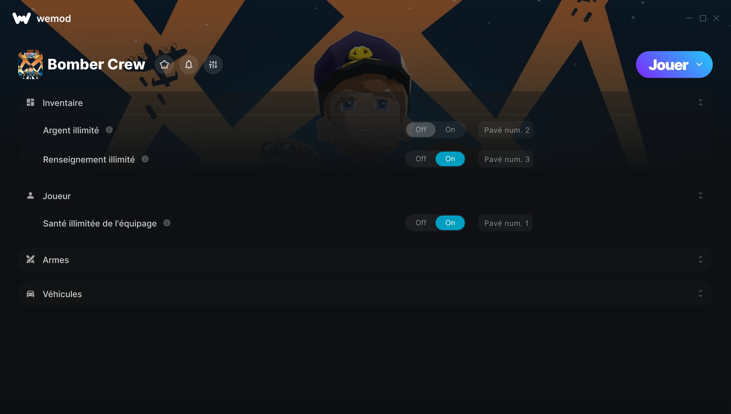 Easy to use interface, and allowed me to explore the game without fear of death. Well done WeMoD! Chocks Away, tally ho!