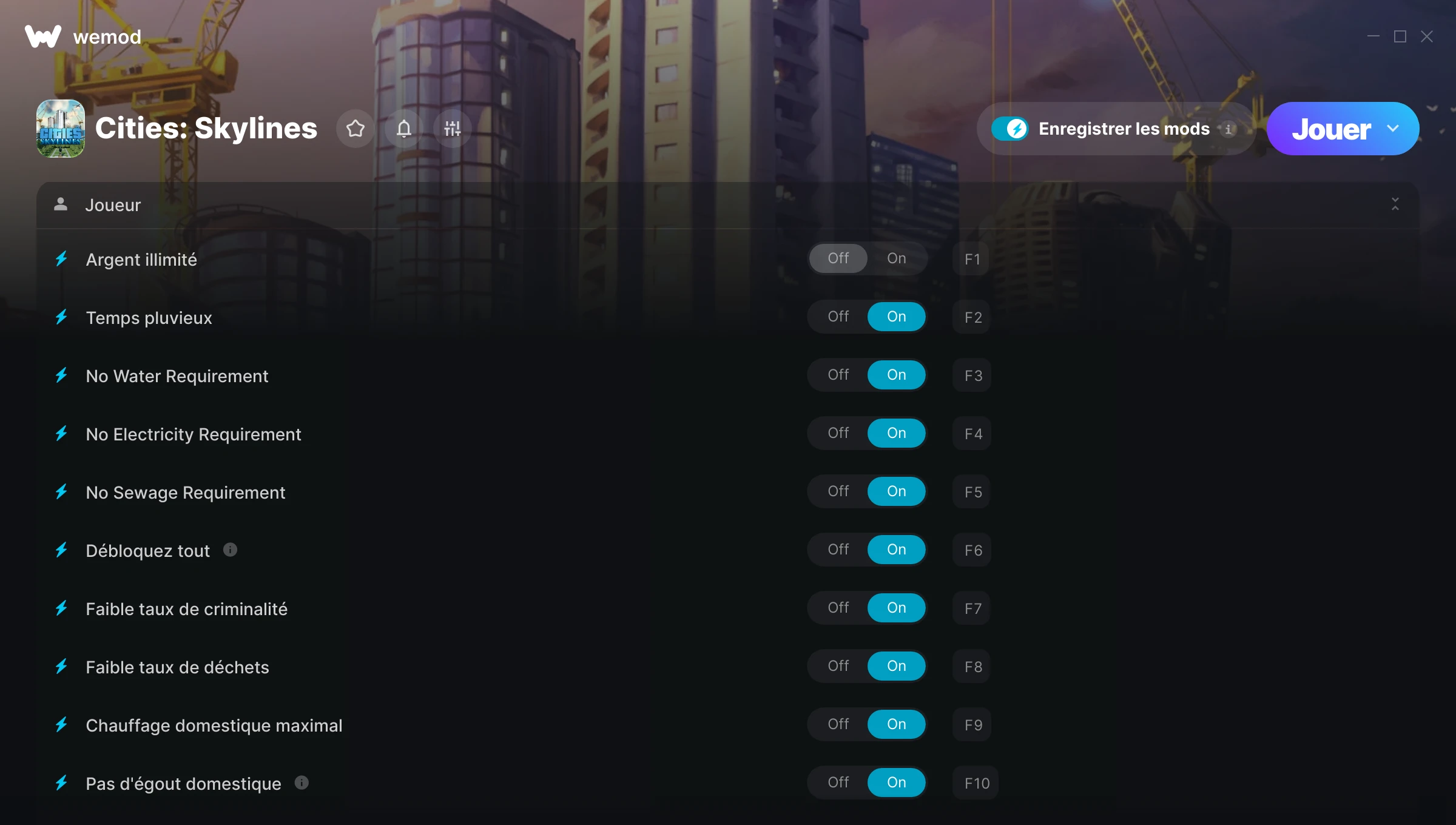 lets me enjoy playing the game without the stress of the hard stuff lol love this on wemod! two thumbs up