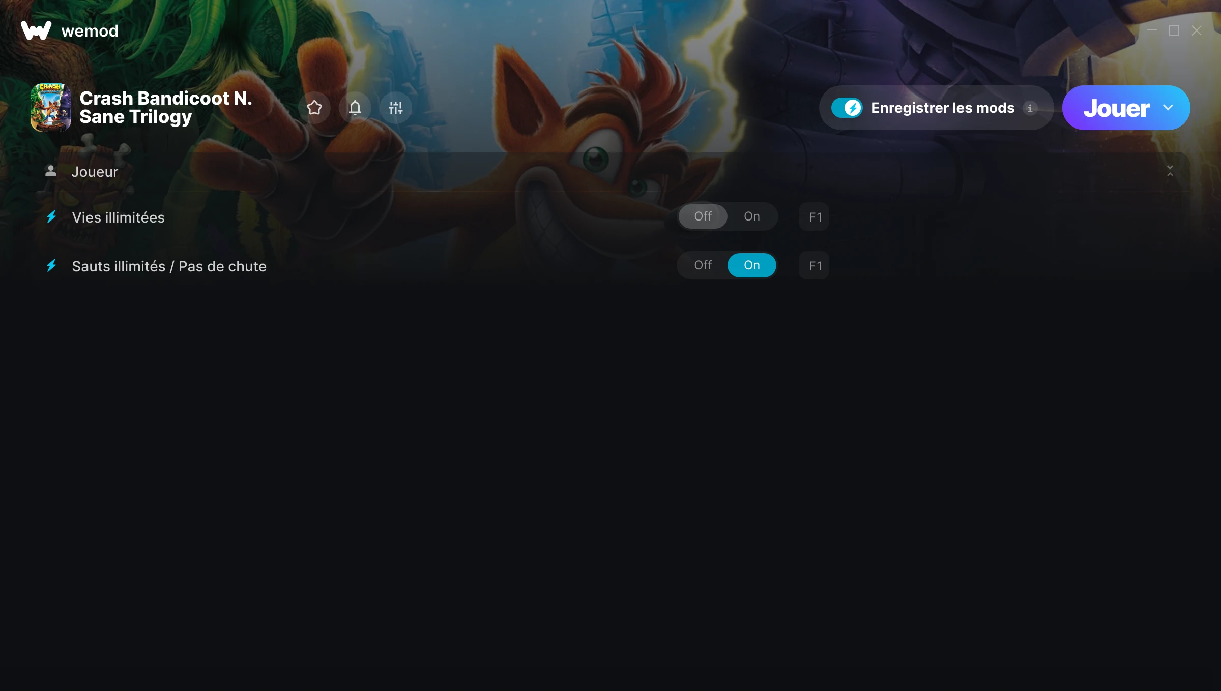 85MB Windows … ou visitez notre site sur votre PC pour télécharger l’application Obtenir Vies illimitées, Sauts illimités / Pas de chute for Crash Bandicoot N. Sane Trilogy with WeMod
