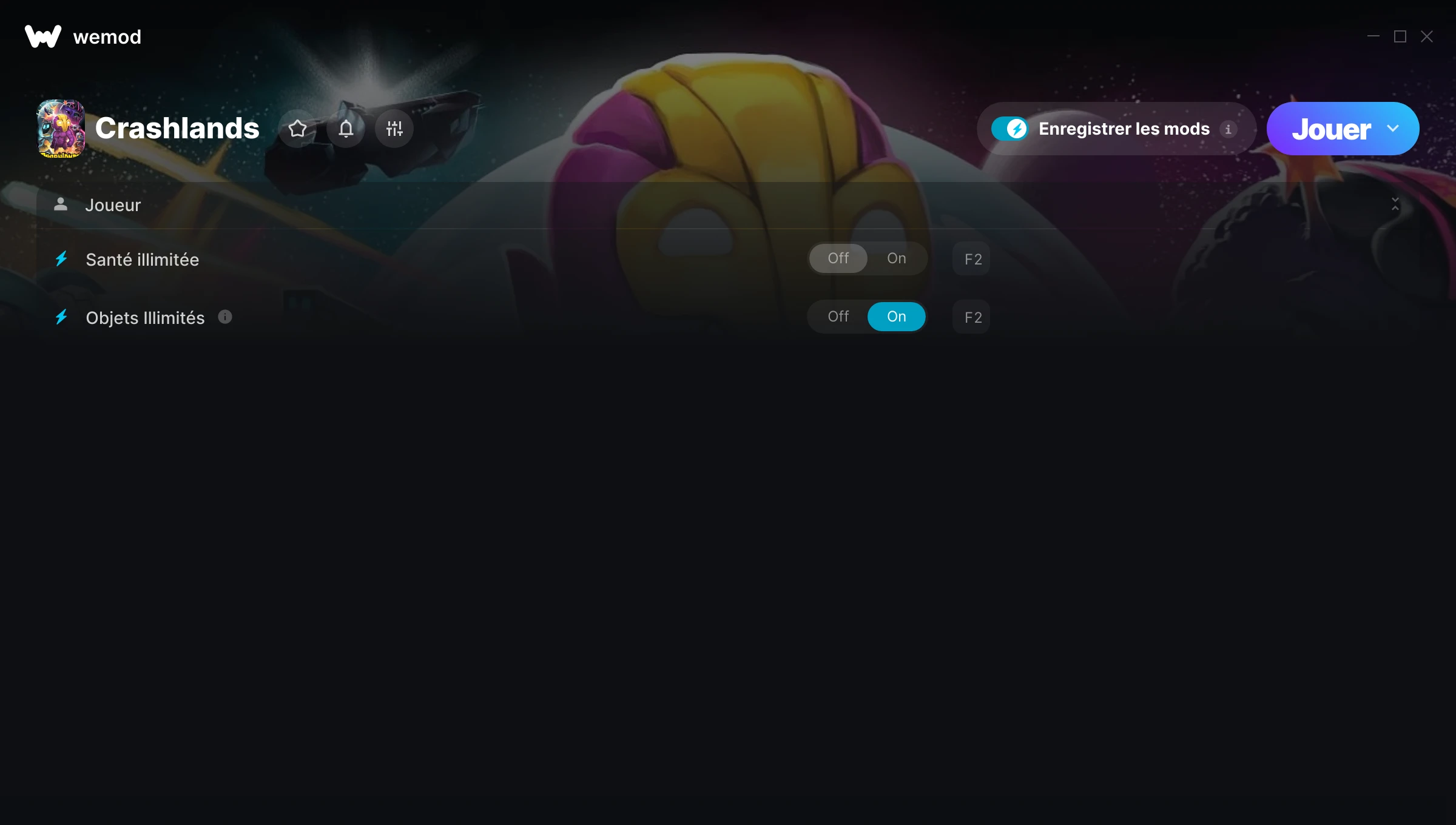 Activé Désactivé Santé illimitée Endurance illimitée Activez des mods