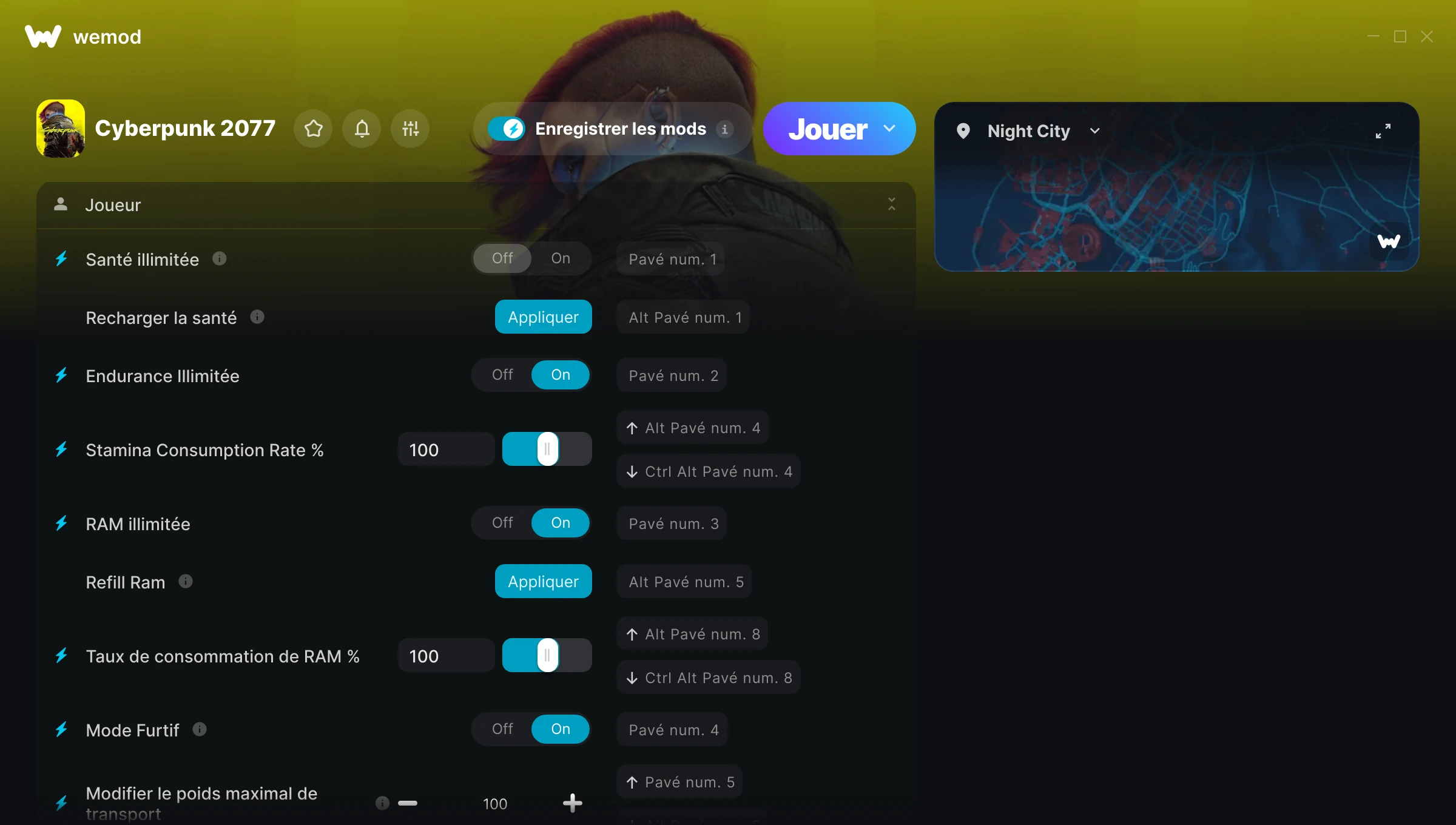 The cyberpunk 2077 cheats still works perfectly, but however the in-game win-g option still needs some work. I tried to use it from in-game option, and it does not activate the cheats at all. Even when it says it is on, it really is not working. Needs fix. Overall. Thank you for making WeMod. It is the best.