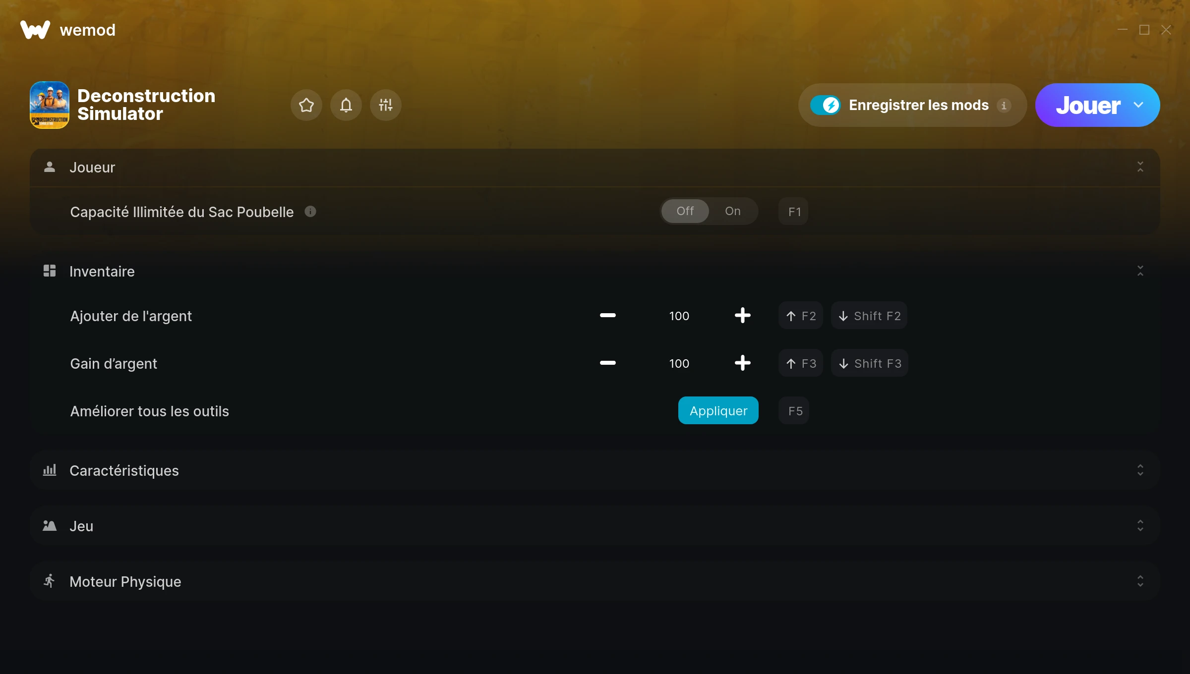En savoir plusWeMod est une plateforme sécurisée et gratuite qui repose sur une communauté de millions de joueurs dans le monde. Nos abonnés Pro nous permettent de proposer nos mods au plus grand nombre. Pour en savoir plus, consultez nos avis sur Trustpilot.
