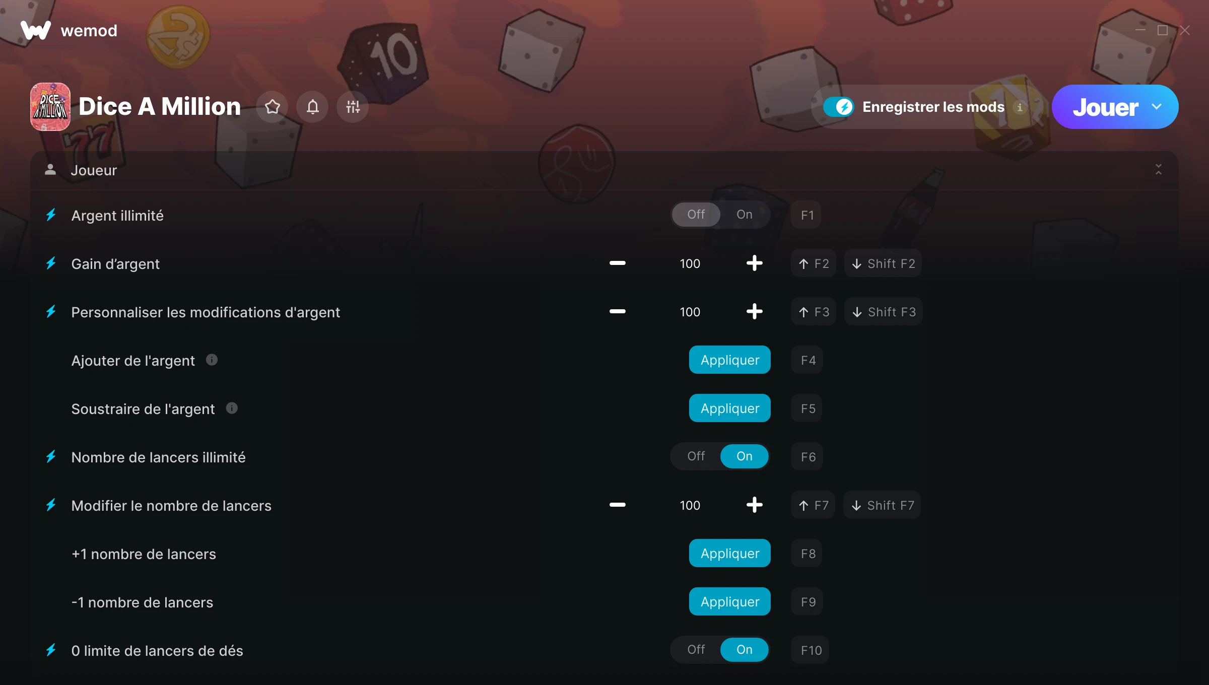 85MB Windows … ou visitez notre site sur votre PC pour télécharger l’application Obtenir Argent illimité, Gain d’argent & 9 autres mods for Dice A Million with WeMod