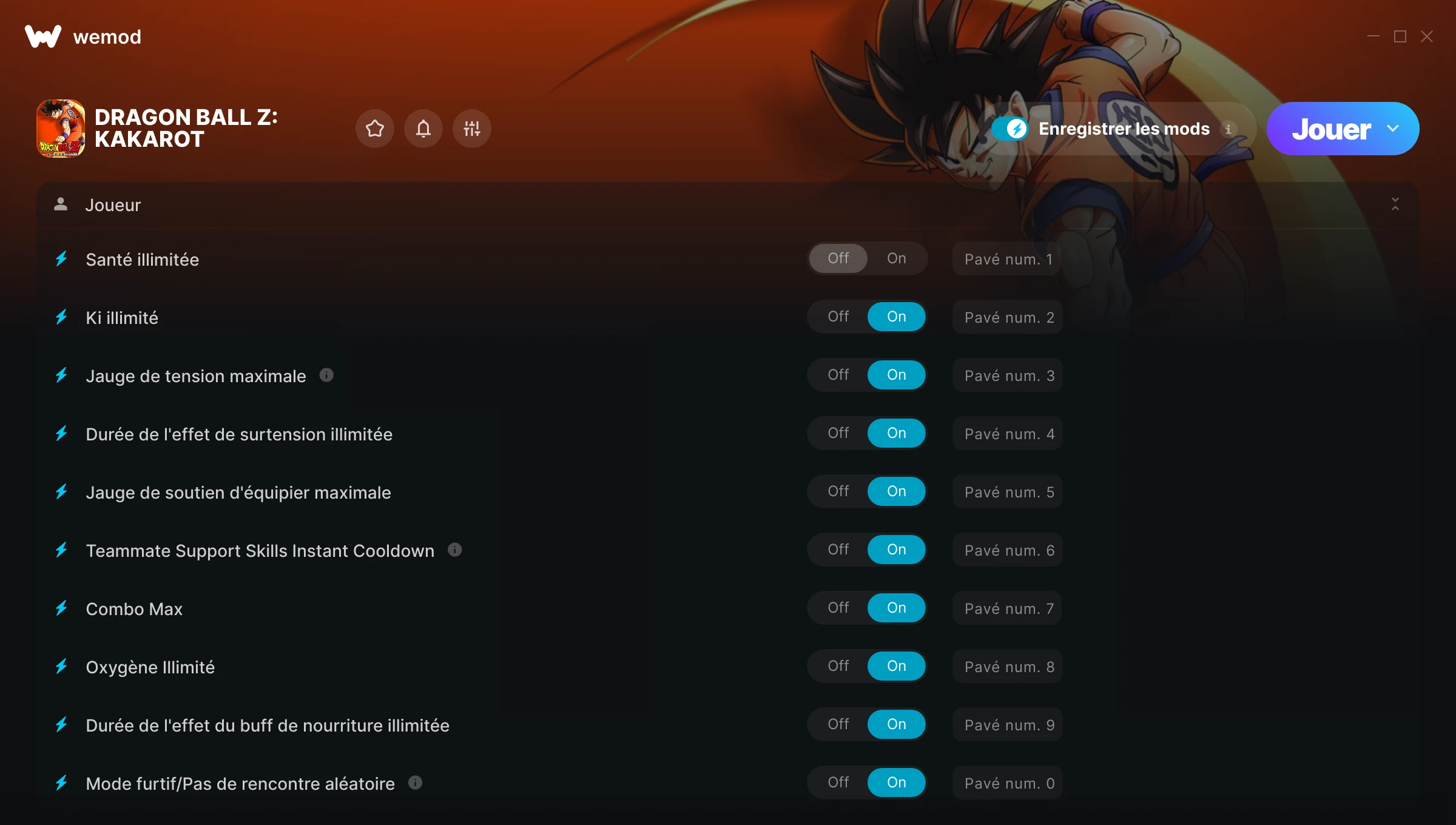 Made the game much more fun to play, couldn't grind it out to the max potential of finding every z orb for upgrading so it saves me enough time due to my limitations of playing! Thank you very much WeMod and the Developers of this mod. I'm very happy to have found you guys.
