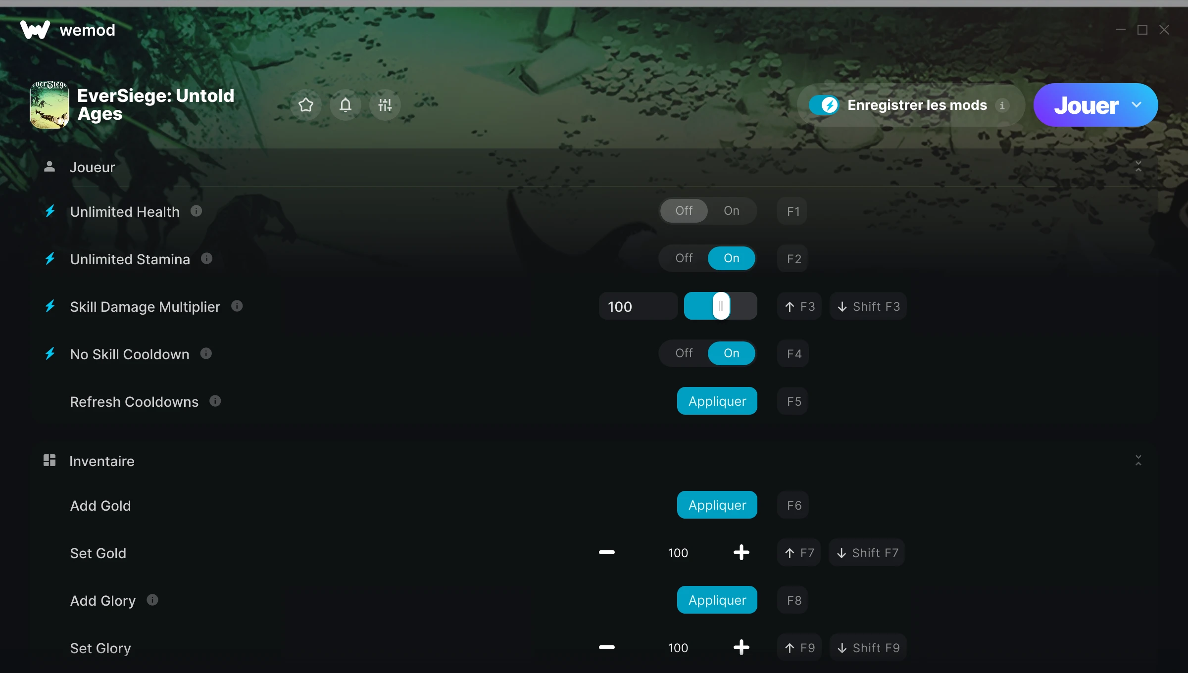 Activé Désactivé Santé illimitée Endurance illimitée Activez des mods