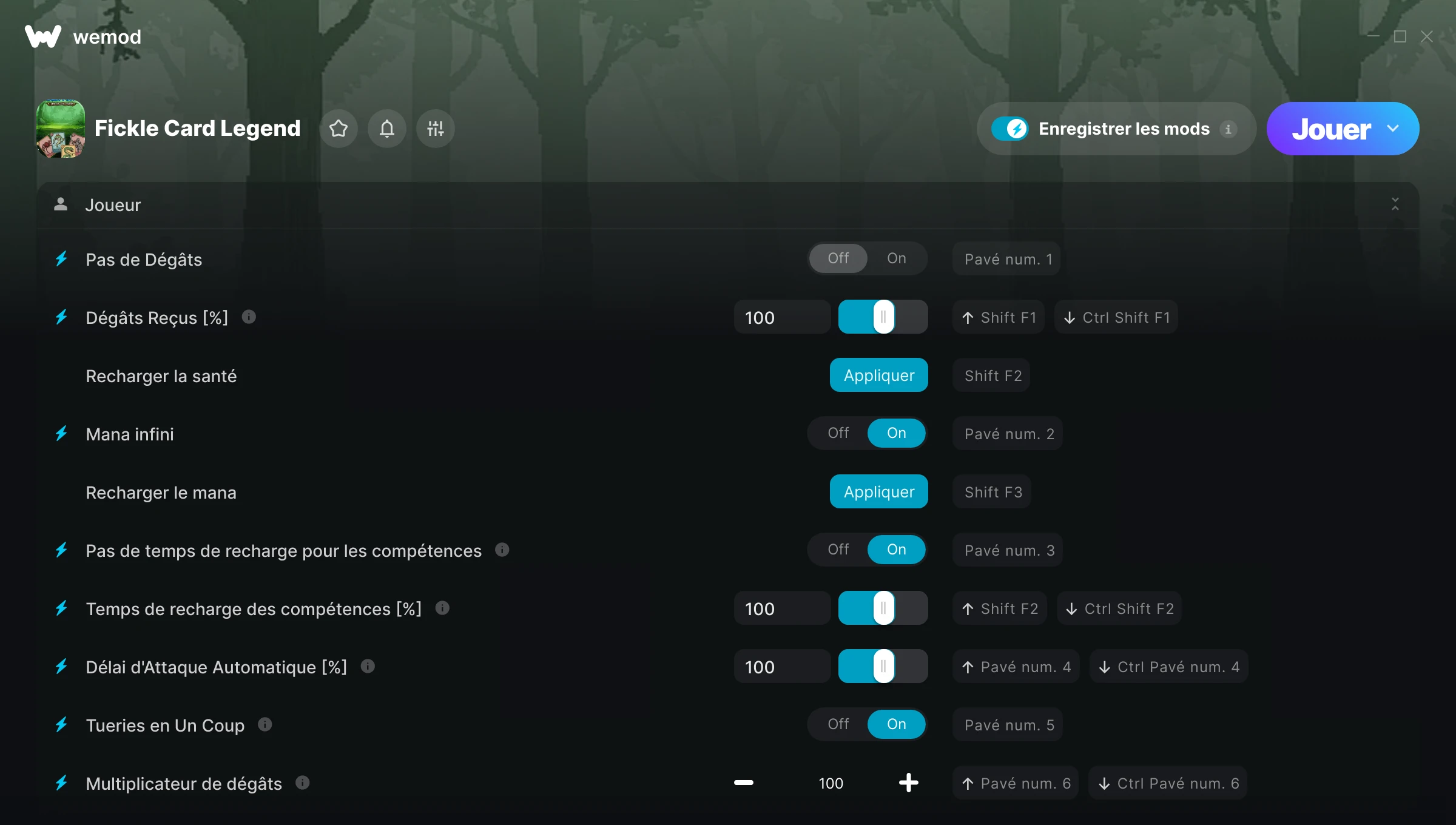 85MB Windows … ou visitez notre site sur votre PC pour télécharger l’application Obtenir Pas de Dégâts, Dégâts Reçus [%] & 14 autres mods for Fickle Card Legend with WeMod