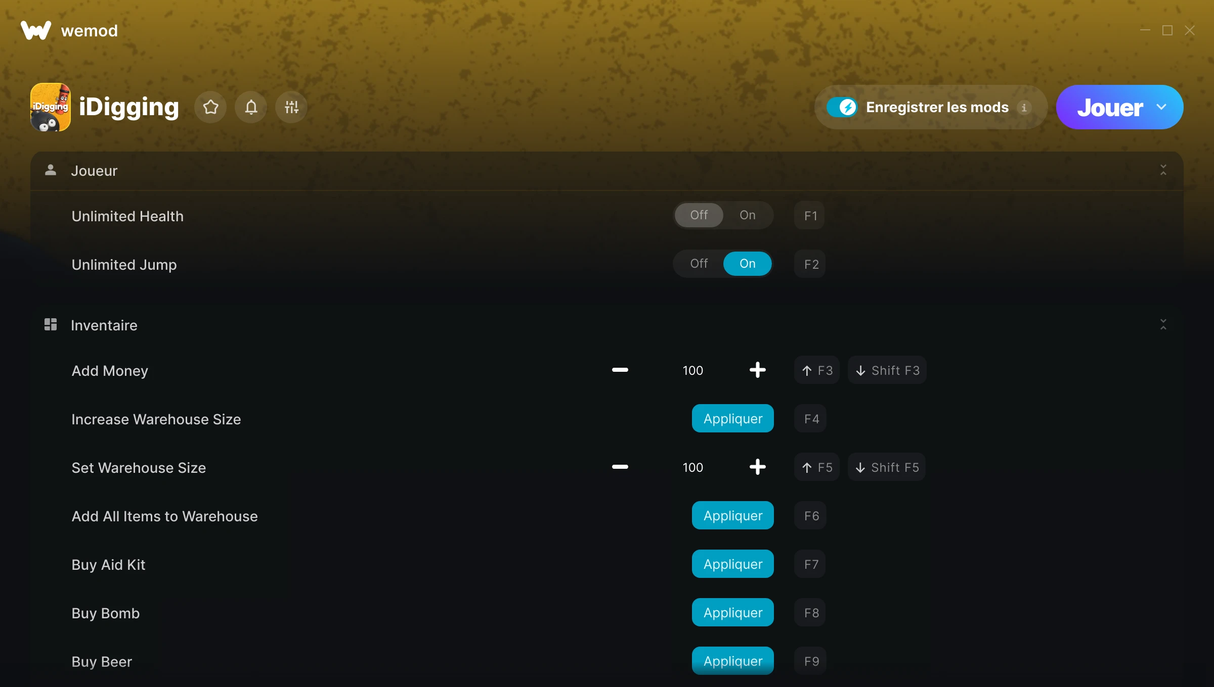 Trainers et mods pour iDigging