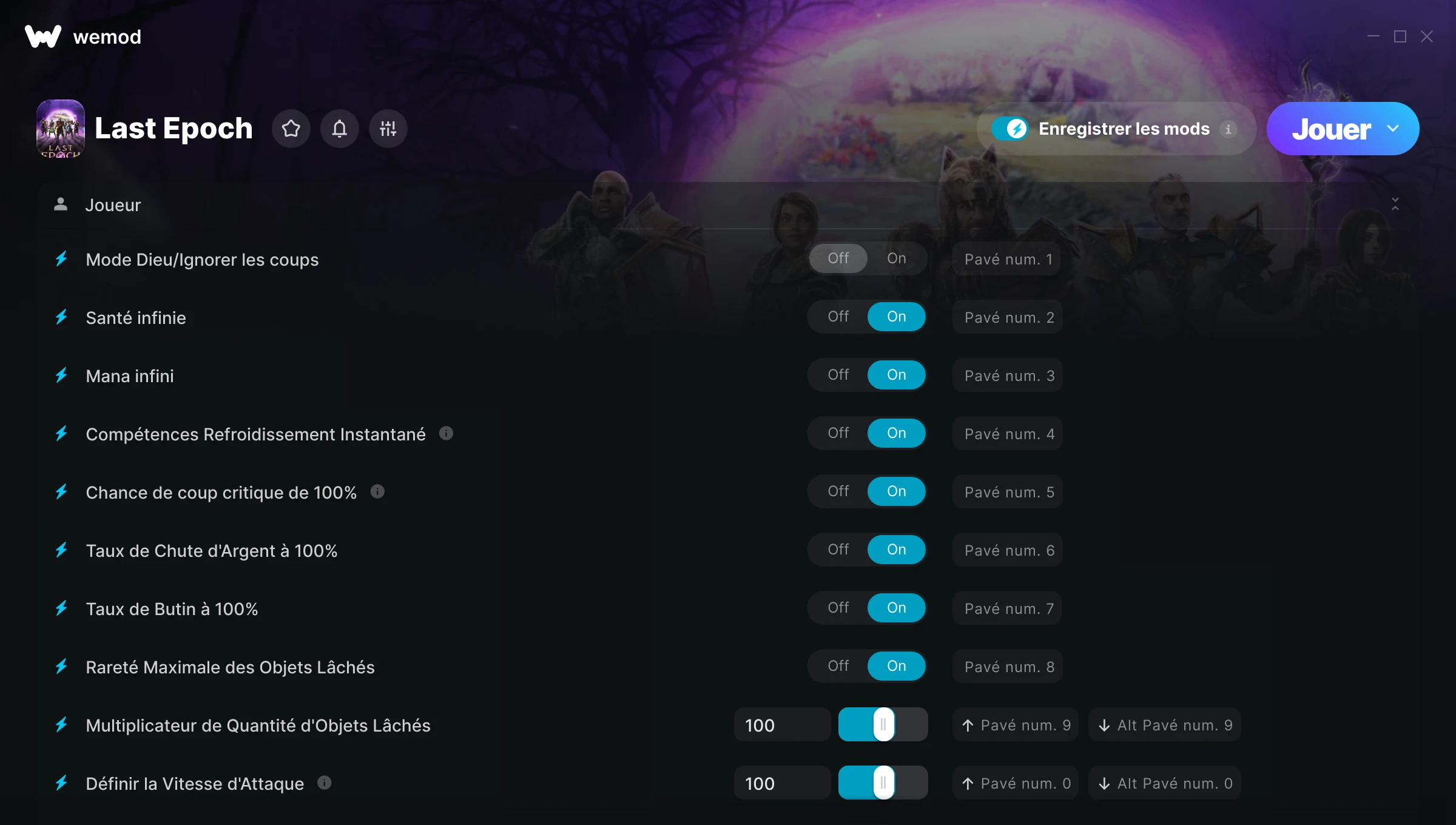 I would love to see more than these cheats if possible, though. Something to have infinite forging items and forging potential on equipment, or maybe something for the loot chances ? I know it exists with Cheat Engine tables, so maybe it's doable here too ?