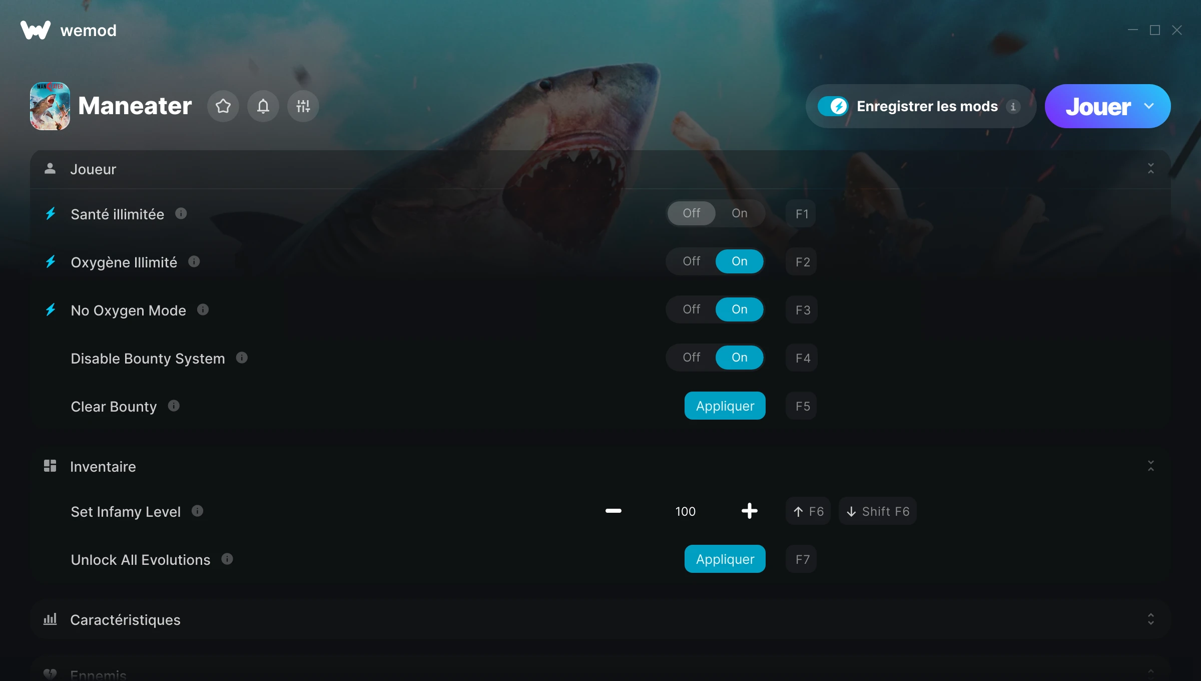 I am new to PC. so having to get all my old games back to where I was at is a painful and slow task sometimes. wemod is the perfect app for me to help with that. it also is increadibly fun on all the games ive played so far like walking zombie 2 and wolfenstein and now youve blown me away with maneater. truly impressive
