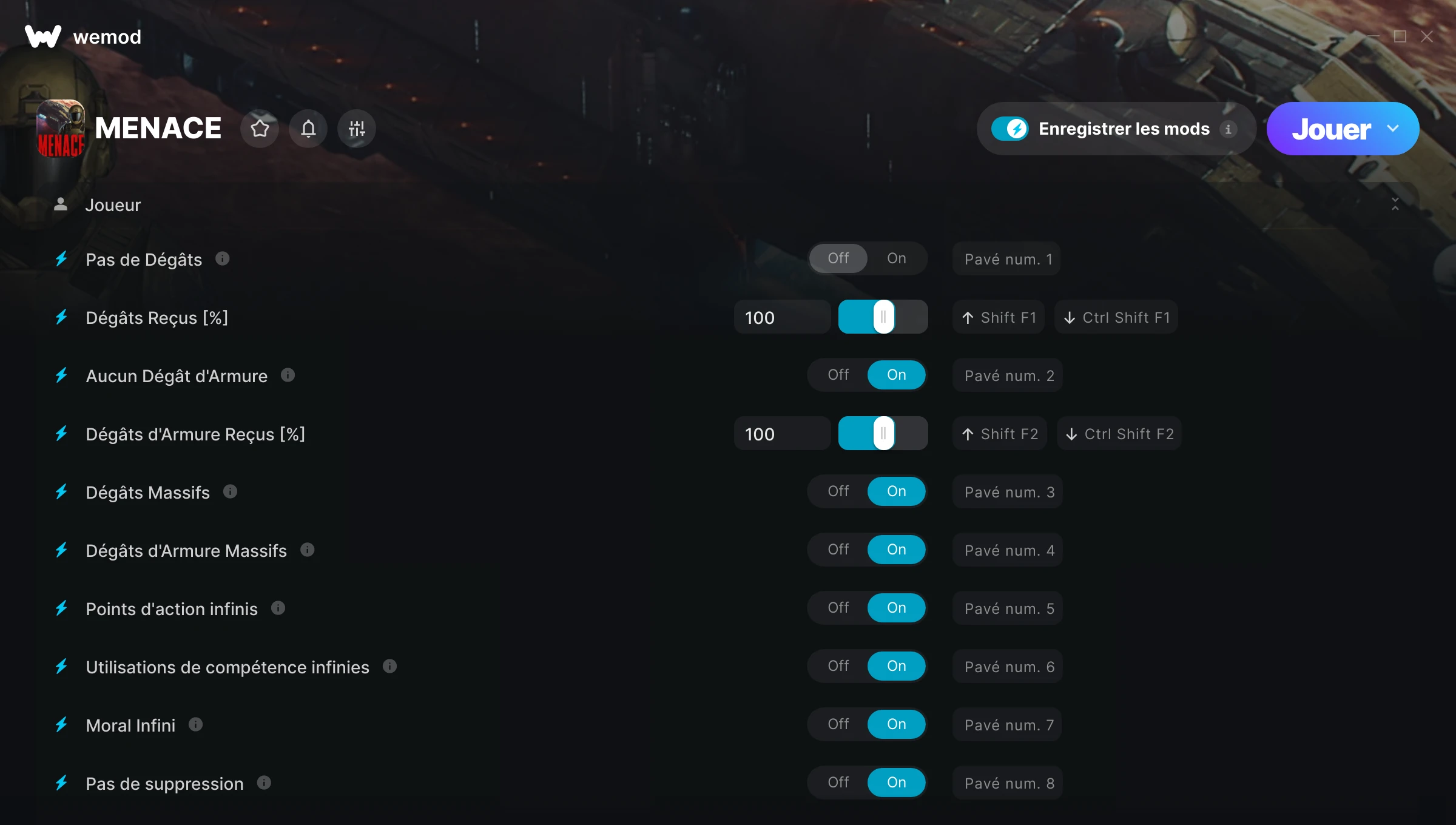 En savoir plusWeMod est une plateforme sécurisée et gratuite qui repose sur une communauté de millions de joueurs dans le monde. Nos abonnés Pro nous permettent de proposer nos mods au plus grand nombre. Pour en savoir plus, consultez nos avis sur Trustpilot.