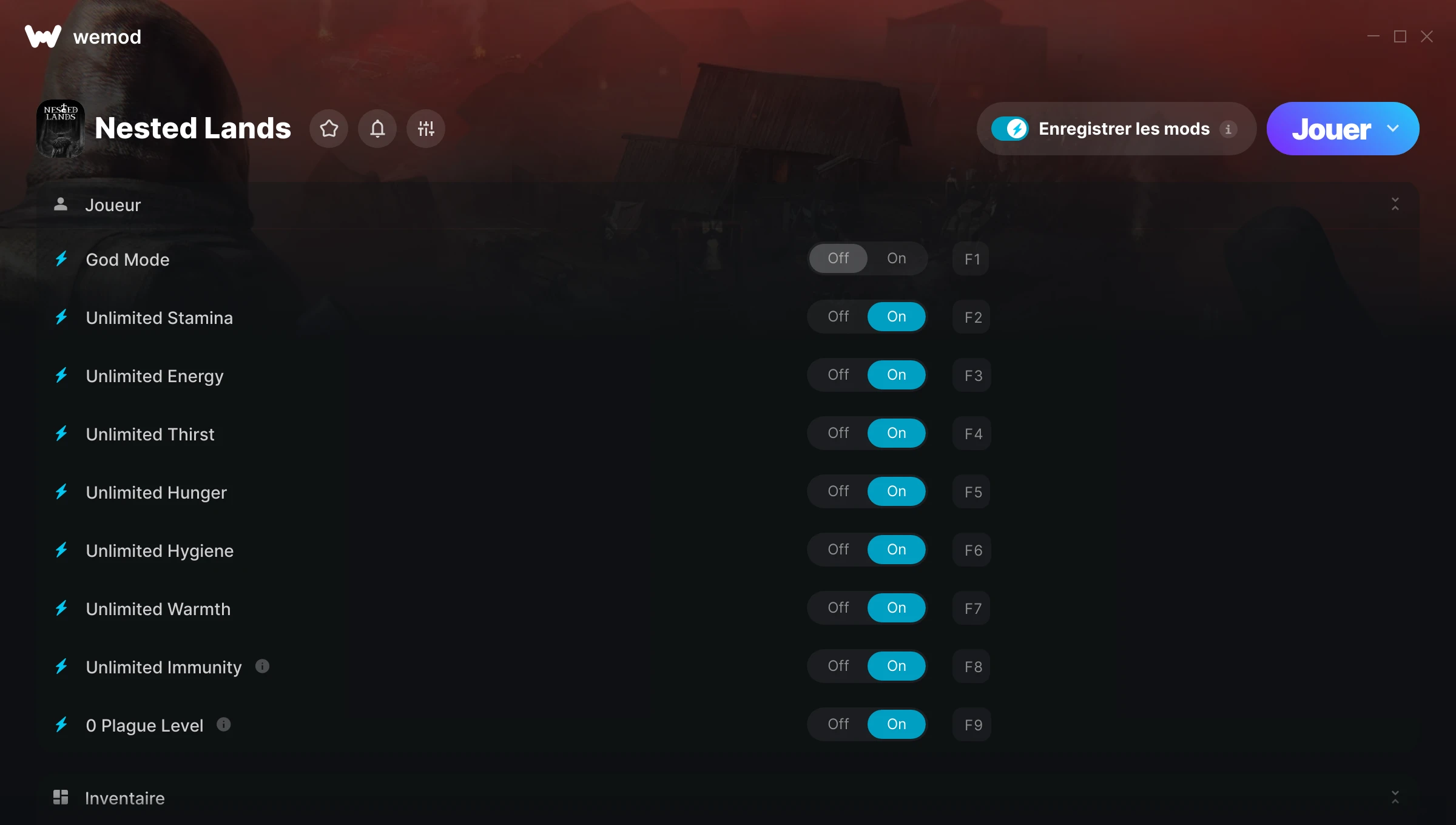 Activé Désactivé Santé illimitée Endurance illimitée Activez des mods