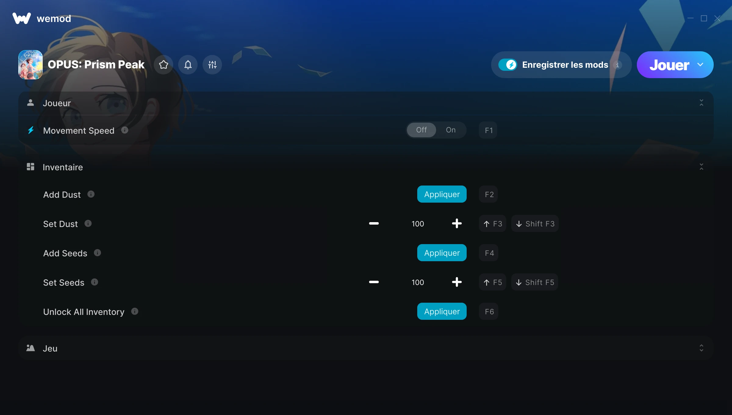 85MB Windows … ou visitez notre site sur votre PC pour télécharger l’application Obtenir Movement Speed, Add Dust & 6 autres mods for OPUS: Prism Peak with WeMod